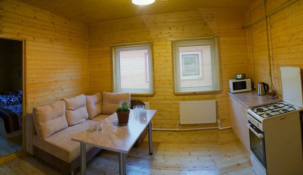 Были проездом на одну ночь. Домик чистый, комфортный. В номере есть микроволновка, чайник, холодильник. Очень уютно. Расположение далековато от города.
