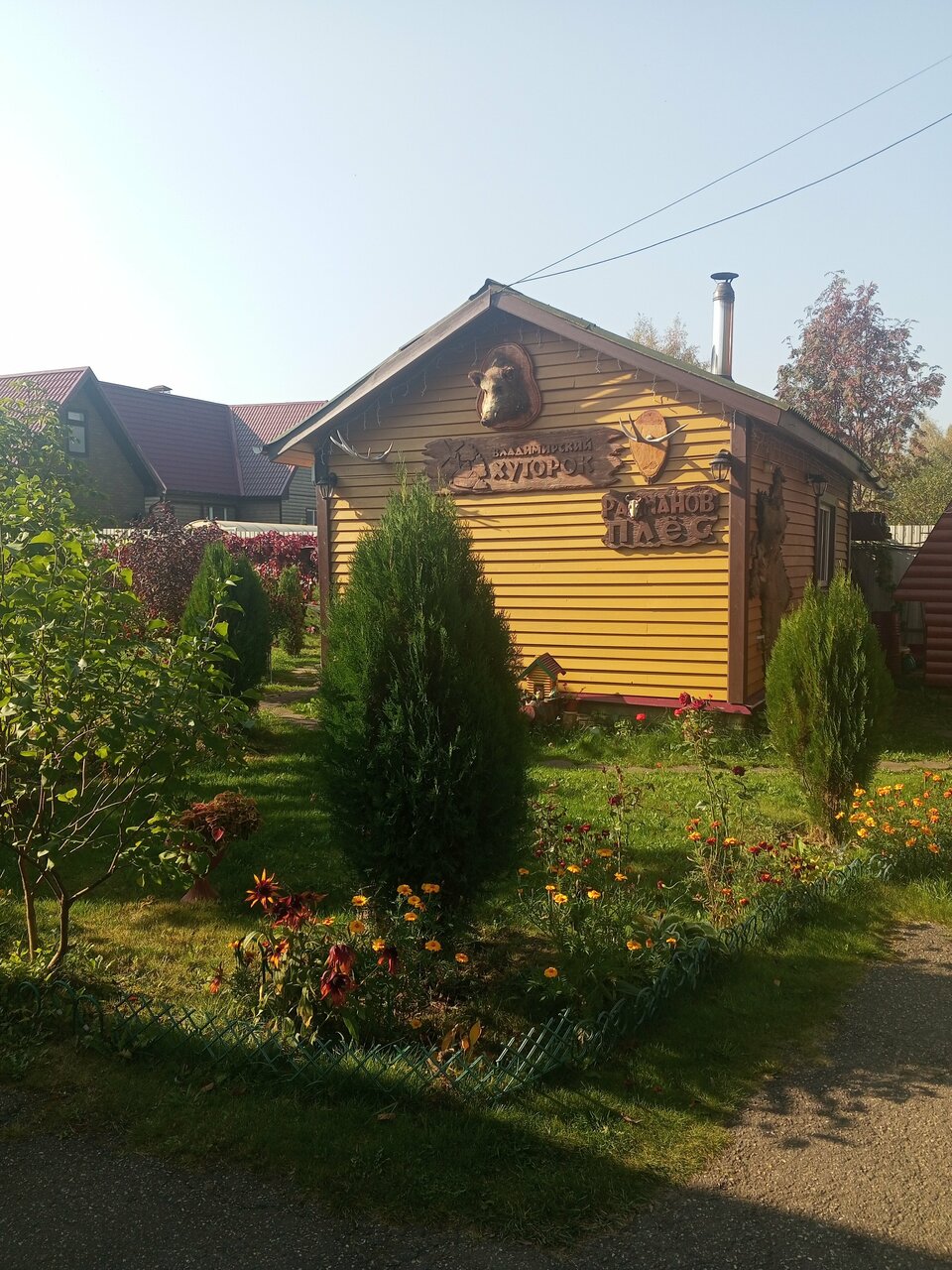 Потрясающий отель и очень дружелюбные хозяева. Несколько коттеджей. Мы взяли трёхкомнатный за 3200 руб в сутки — это сущие копейки в наше время. Территория ухоженная, от Владимира 10 мин на машине, дорога хорошая. Есть баня. Есть возможность заказать завтрак, обед и ужин прямо в номер, хозяйка сама приносит. Wifi хороший, есть бесплатная охраняемая парковка. Водоёмы рядом. Большая мангальная зона бесплатно.