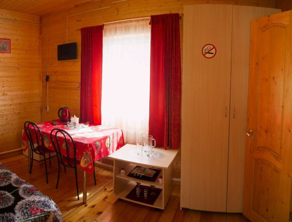 Очень милые чистые номера, отделанные деревом. Приятная цена. Симпатичный дворик. Есть баня. Минусы: отсутствие парковки и далековато от города.