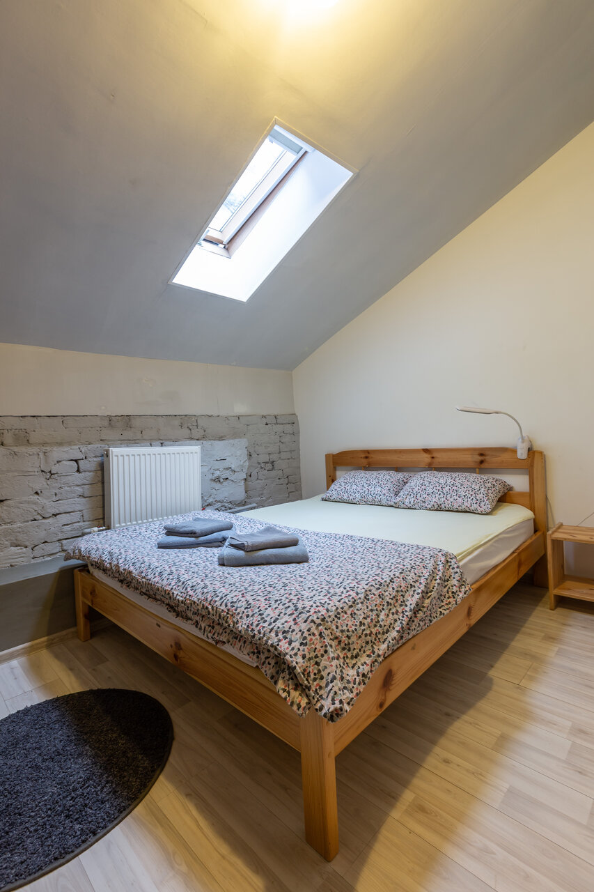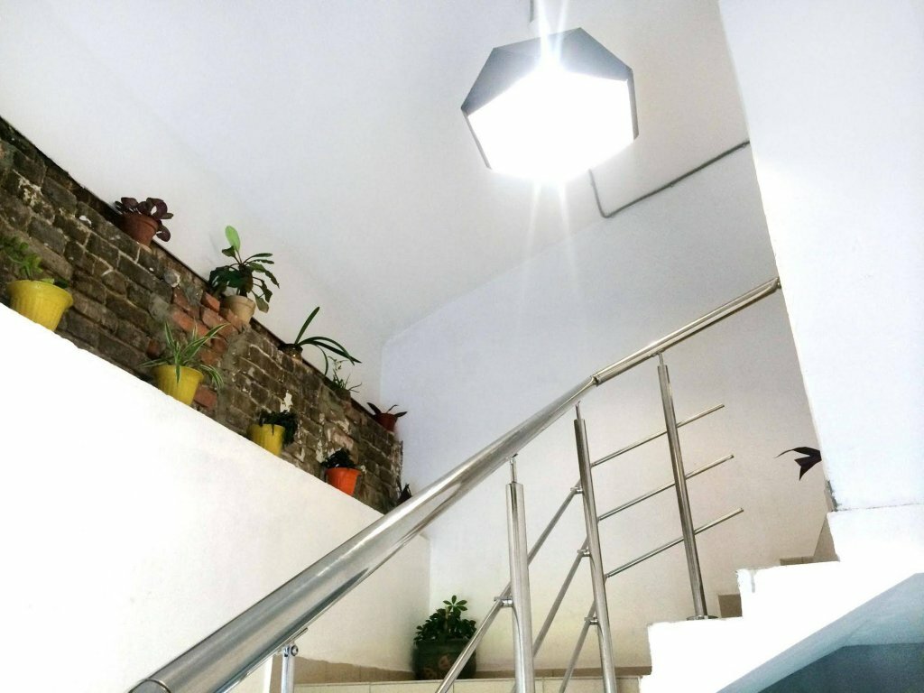 Хостел находится в двух шагах от центральной улицы и ,соответственно,вам не нужно тратить время на где покушать и на путь к смотровой площадке с прилегающими к ней окрестностями! Вход в хостел с улицы и на второй этаж с новой отдельной кодовой дверью.Внутри,рядом с ресепшн,маленький кухонный уголок со всем необходимым.Стиралка есть)Все очень чисто без лишних ковров и пыли. Нам достался номер с мансардной крышей,с собственным санузлом и душем.Есть окно с видом на громадные трубы(вытяжка с какого то кафе),которые время от времени гудели.Неособо мешало,ибо пришли и завалились спать)) Очень приятный бонус,кафе столовая на первом этаже.Еда вкусная,кофе зерновой Рекомендую к проживанию!