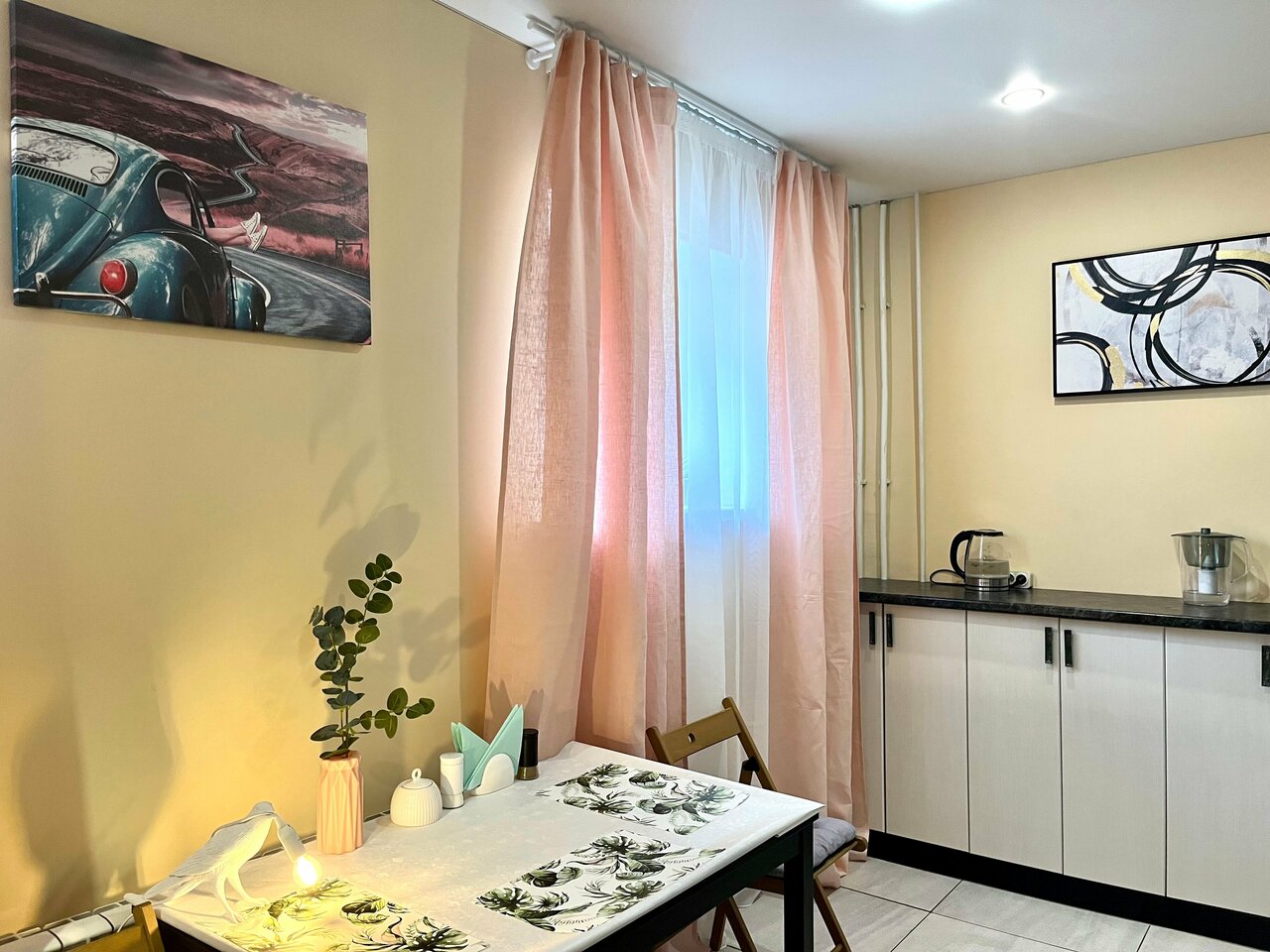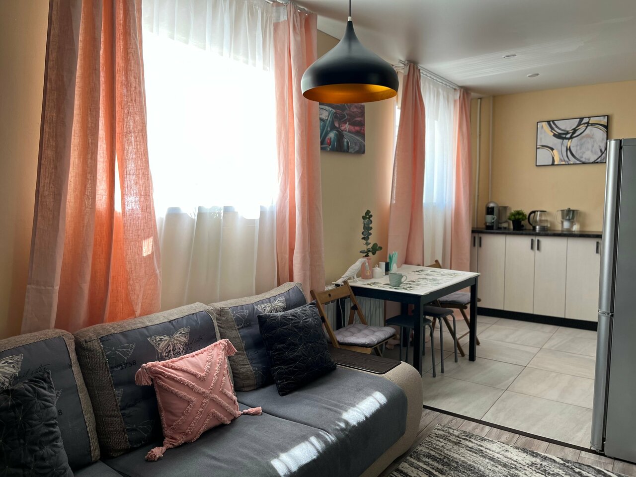 Отдыхали в апартаментах семьей из 4х человек. Все комфортно разместились на 2-спальной кровати и большом диване. Квартира просторная, всем необходимым оборудована: техника (микроволновка, фен, утюг, стиральная машина, чайник), посуда, гигиенические принадлежности (шампунь, гель для душа, ватные палочки, туалетная бумага, салфетки). Очень стильный дизайн квартиры. Создана и содержится с душой. Отдельный вход с улицы и парковка у двери. Расположение прямо в центре. Пешая доступность ко ВСЕМ достопримечательностям. Спасибо большое за уют и гостеприимство!
