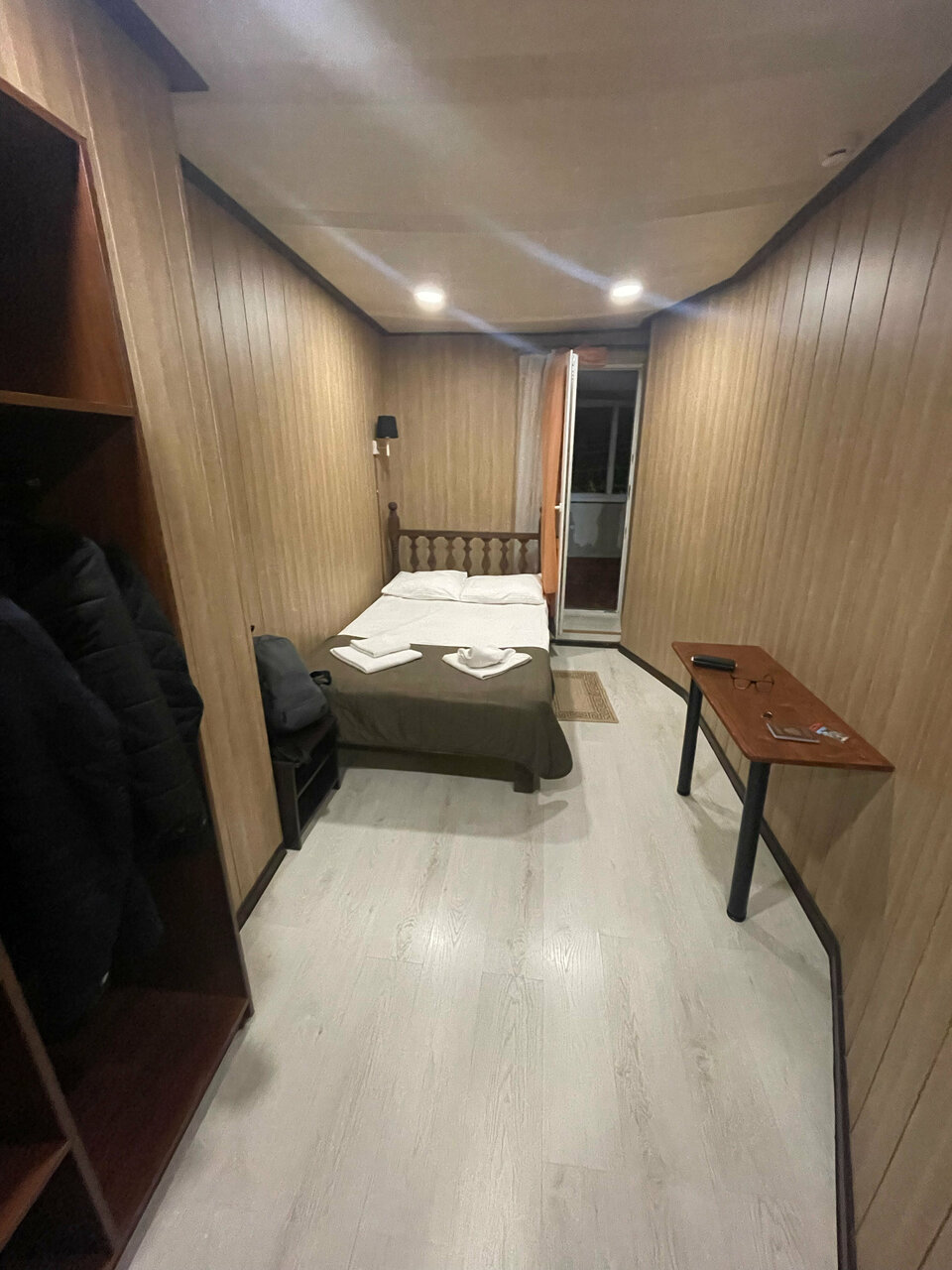 Жили на самом верху, в номере темно и холодно , с виду как бытовка на стройке , слышимость очень большая , а так же стоимость реально завышена за такое жилье .В целом всё за что ни возьмись — на одну звезду, а она в принципе только за то что крыша не течет .