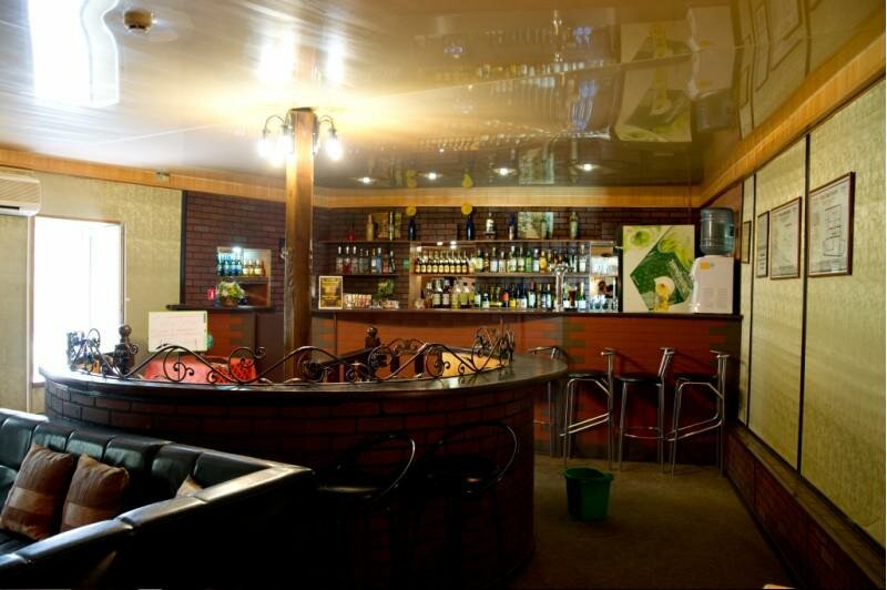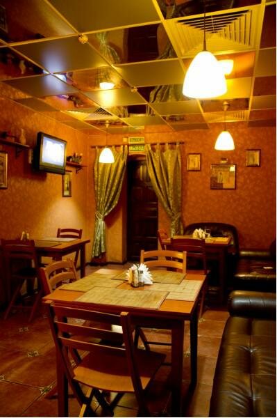 В самом центре города, внутри как бы помягче выразиться)) все очень ‘ушатано’ , ресторан работает странно, народу никого, должен быть бар, но нету его) в общем на твердую 4 ку, не больше, с водой горячей проблемы