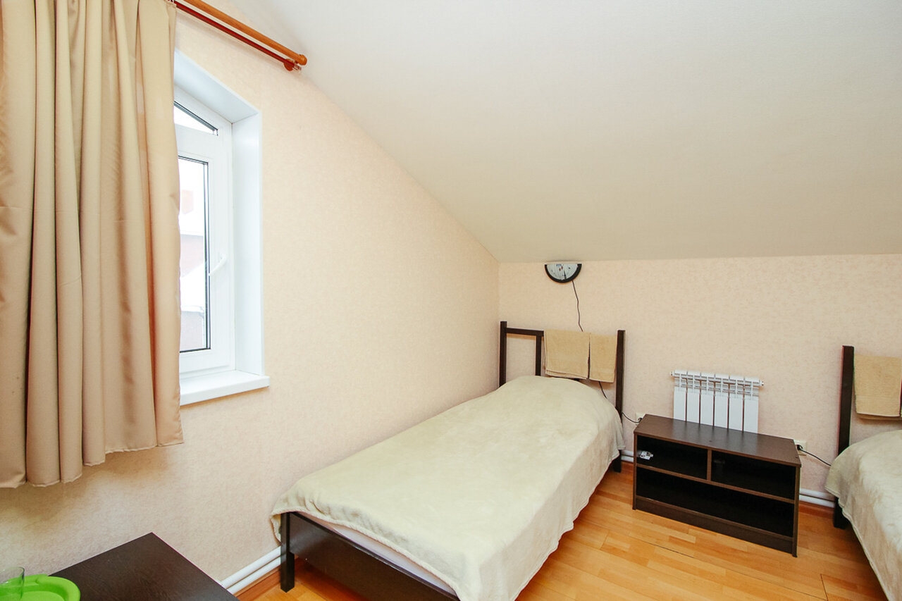 Недорогая гостиница недалеко от центра. Гостеприимный, внимательный хозяин Евгений. Наш номер был на 3 этаже. Лестница ну очень крутая, поэтому подниматься с чемоданом крайне неудобно. Есть очень маленькая кухня на 2 этаже. Поскольку завтраки не предусмотрены, всё привезли с собой. На кухне две маленькие электроплитки. Утром, когда несколько гостей готовят завтрак, приходится ждать. Кухня очень узкая и больше двух человек не умещаются. Есть два столика, которых тоже на всех не хватает. Заселилась большая компания и всё заняла. Пришлось со своими кастрюлями подниматься к себе в номер на третий этаж. И еще из минусов — вид из окна на крышу с трубой, которая всё время дымит. Парковки нет. Перед зданием гостиницы есть небольшая площадка на 5 машин.