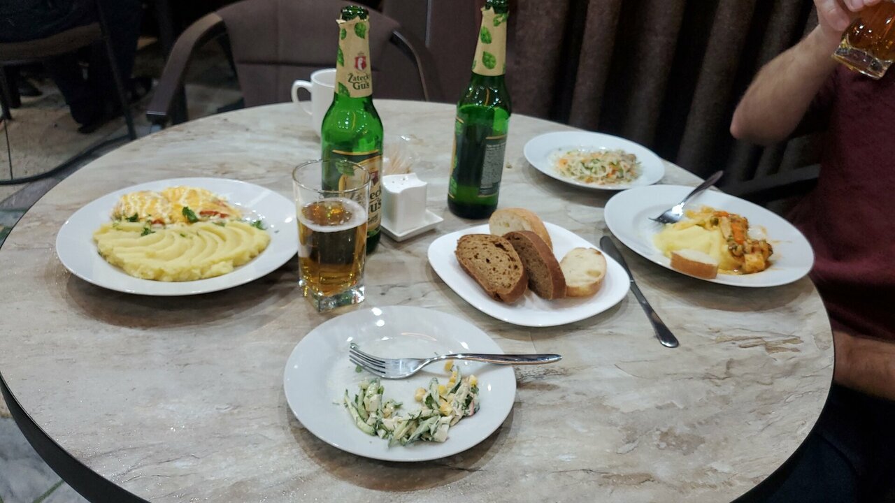 - Устаревший интерьер и еда ("времен СССР").