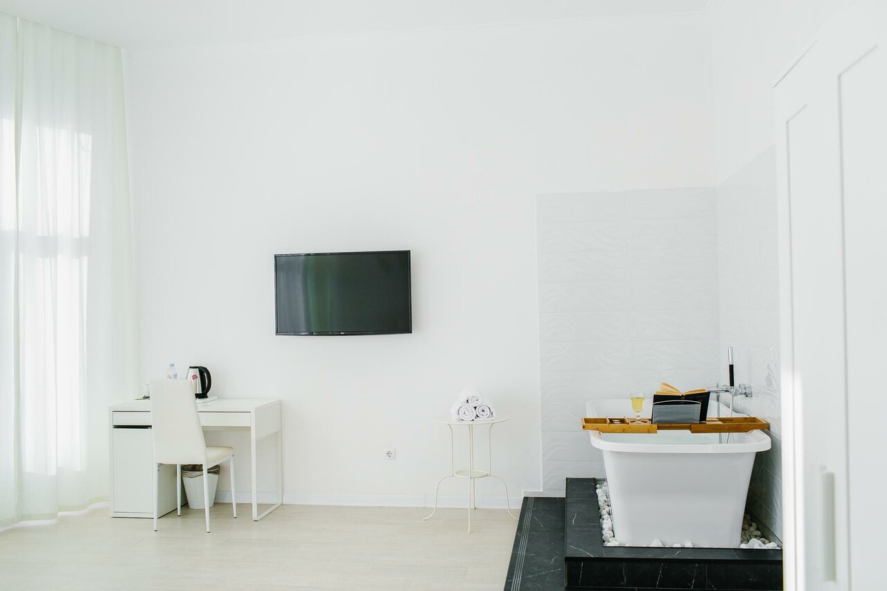 Супер Отель) персонал приветливый вежливый. Номер такой как заказывали( ванна с окном и просторнейшая спальня гостиная) все есть — утюг доска чай кофе вода, банные принадлежности. Завтрак отличный, вкусный кофе, веранда. Машину загнали во двор без проблем))). Светлая чистая уютная. Рекомендую