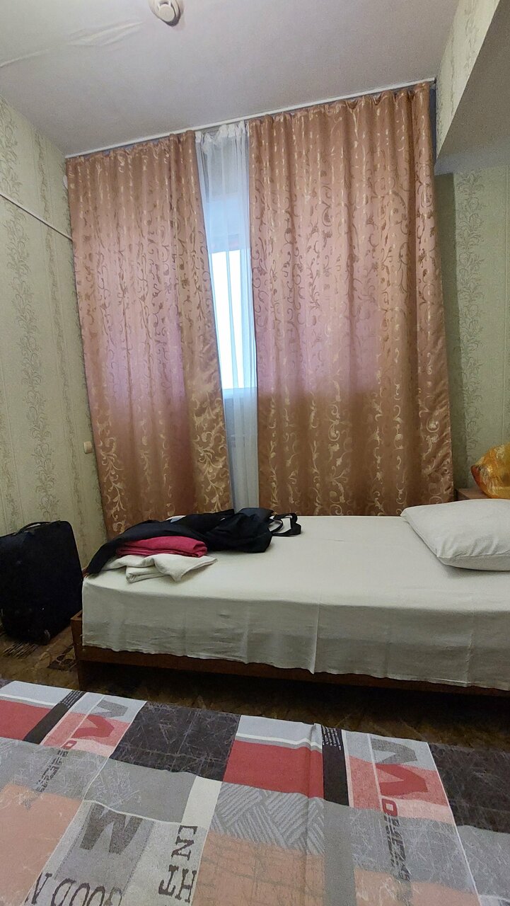 Видно, что сейчас гостиницей никто не занимается, просто зарабатывая и ничего не вкладывая. Номера потрепаные жизнью, убмрают плохо, крошки на столе, белье не заменили , волосы на простынях, полотенца вроде стираные, но в пятнах. Бачок унитаза сломан и все время журчит ручьем, был встречен и убит таракан. Звукоизоляция плохая, воняет куревом. На приставке-7 или 8 каналов даже бесплатные не все. Администратор, она же официант и горничная, как то небрежны и неопрятны, ощущение, что кафе и биллиардная в большем приоритете у персонала, чем гостиница. Завтрак достаточно дорогой. В общем на троечку. И только ввиду дефицита гостиниц в городе
