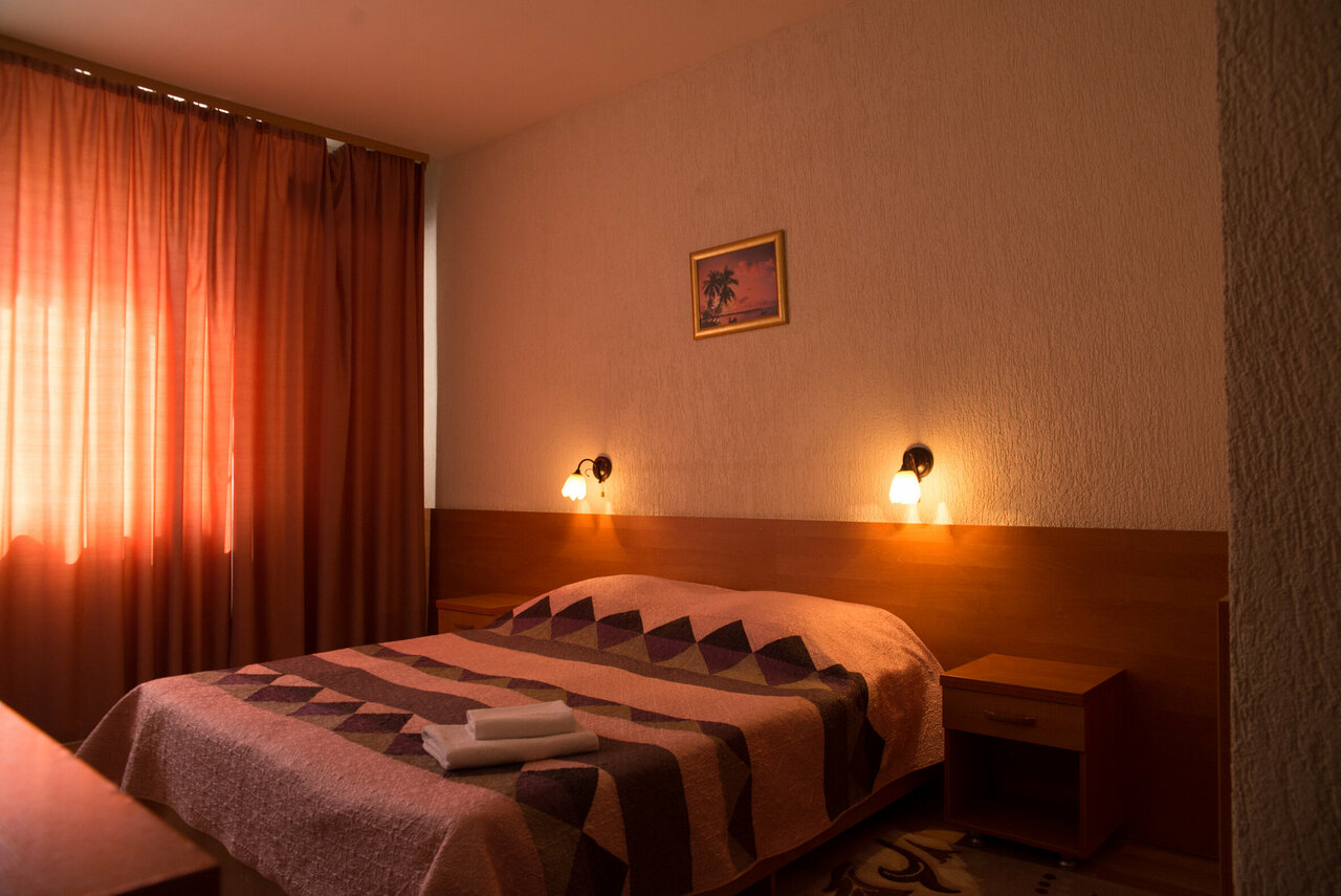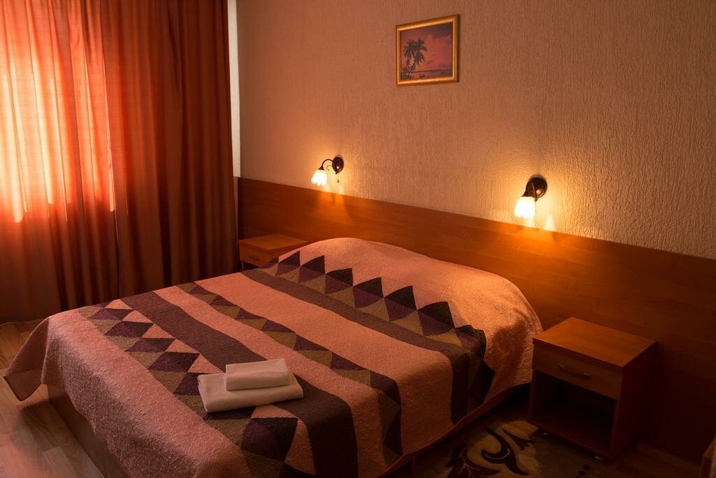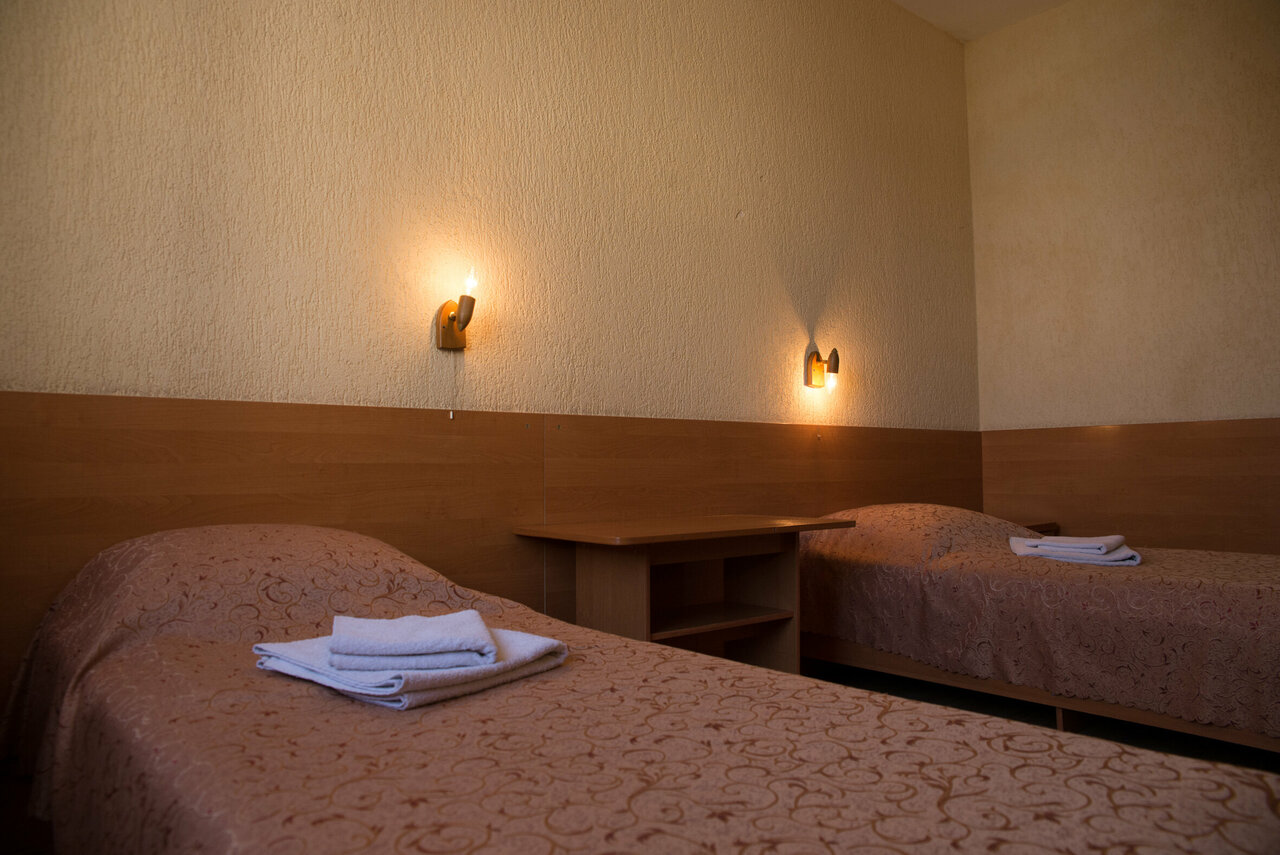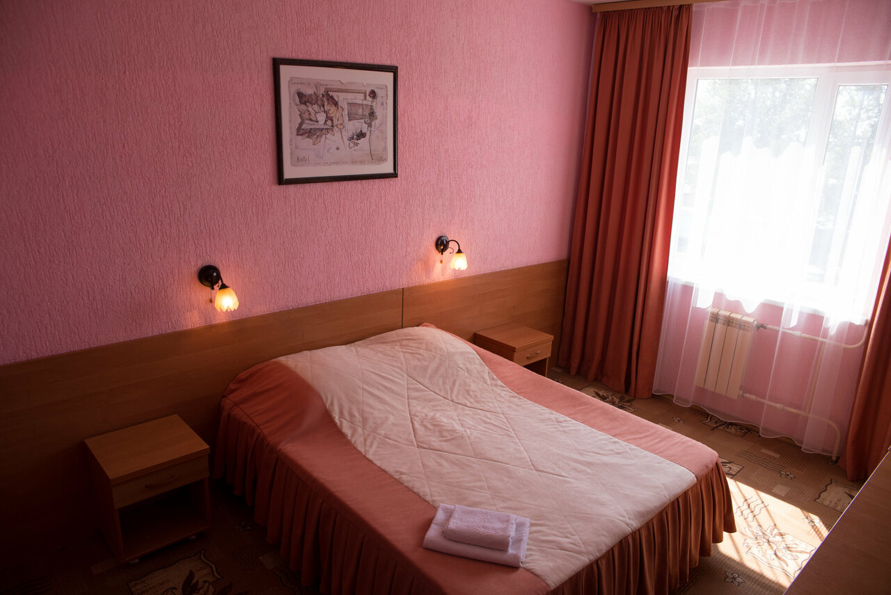 Гостиница по типу еще совсем недавно было общежитие. Освещение крайне недостаточное, нет сеток на окнах, интернет кране слабый. Ремонт относительно не старый, но совершенно несовременный. Пульта от кондиционера не было в середине апреля на улице было жарко. Номера с окнами на дорогу очень шумно. Температура воды в кране горячей воды не больше 30 градусов. Девочкам в душе очень холодно. Из хорошего — постельное белье не изношено, чистое. Телевизор и пульт в рабочем состоянии. Кафе не работает по выходным — это как закрыть продуктовый магазин после 18.00 когда все приходят с работы ). Администраторы вежливые, с документами вопросов не было.