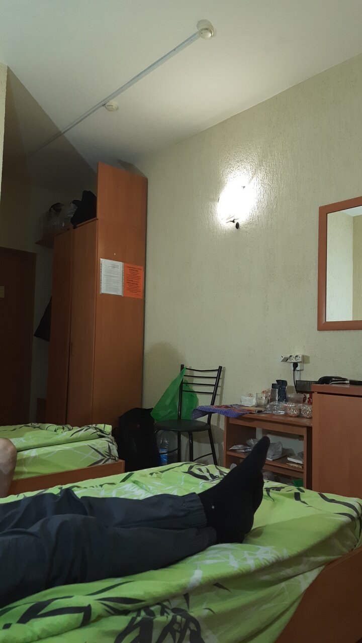 - Неплохой ремонт.; Бюджетный вариант для ночлега.; Удобное расположение (рядом маршрутка).; Рабочий телевизор.; Чистое постельное белье.