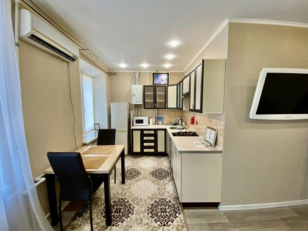 Просторная студия со всем необходимым — удобная кухня с полным набором посуды, чайник, микроволновка, утюг с гладилкой, стиральная машинка, чистый санузел. Удачное расположение в центре города, парковка во дворе. Отличное соотношение цены и качества. Даже обидно было, что останавливались всего на одну ночь. Хозяйку благодарим от души.