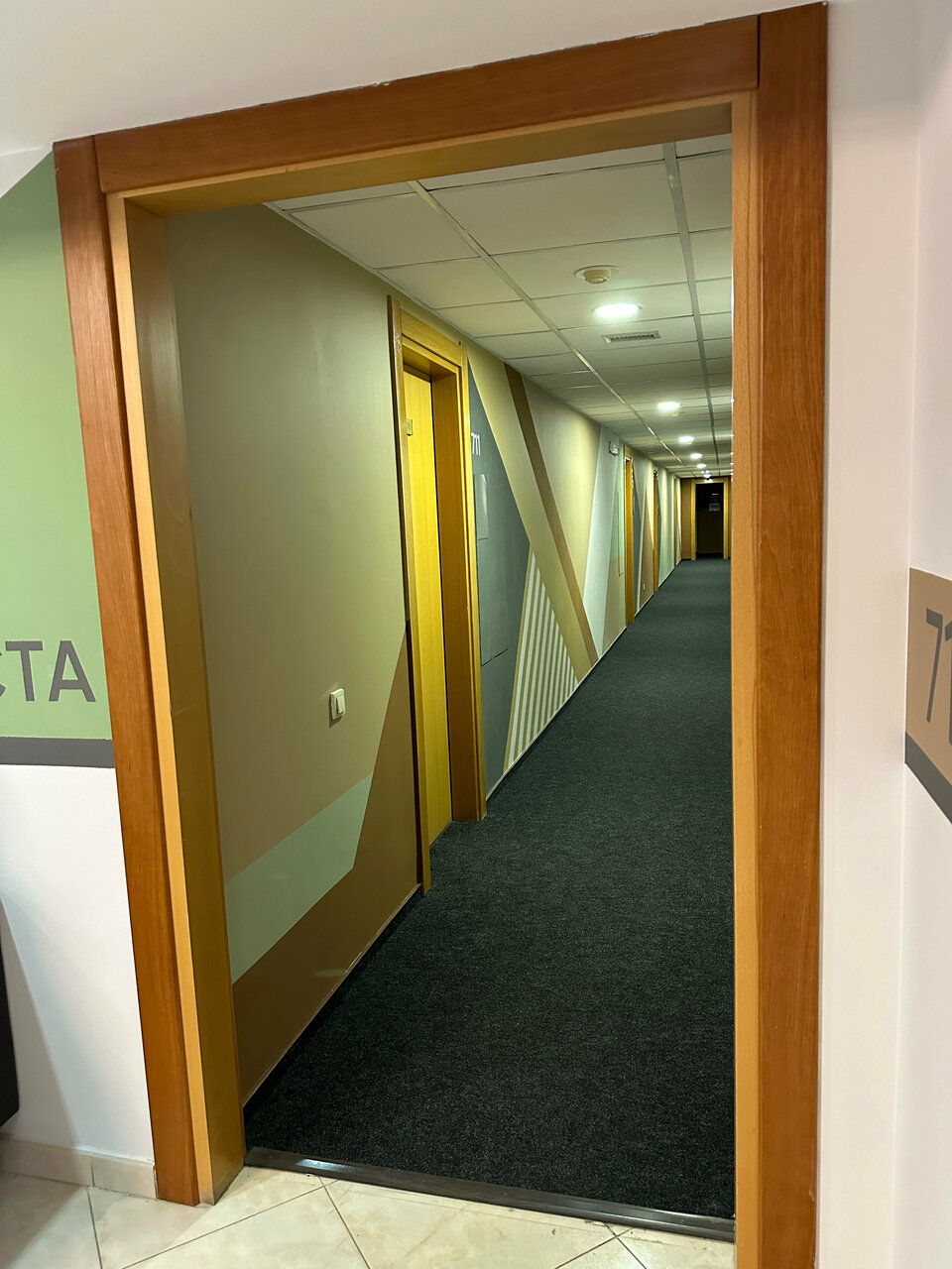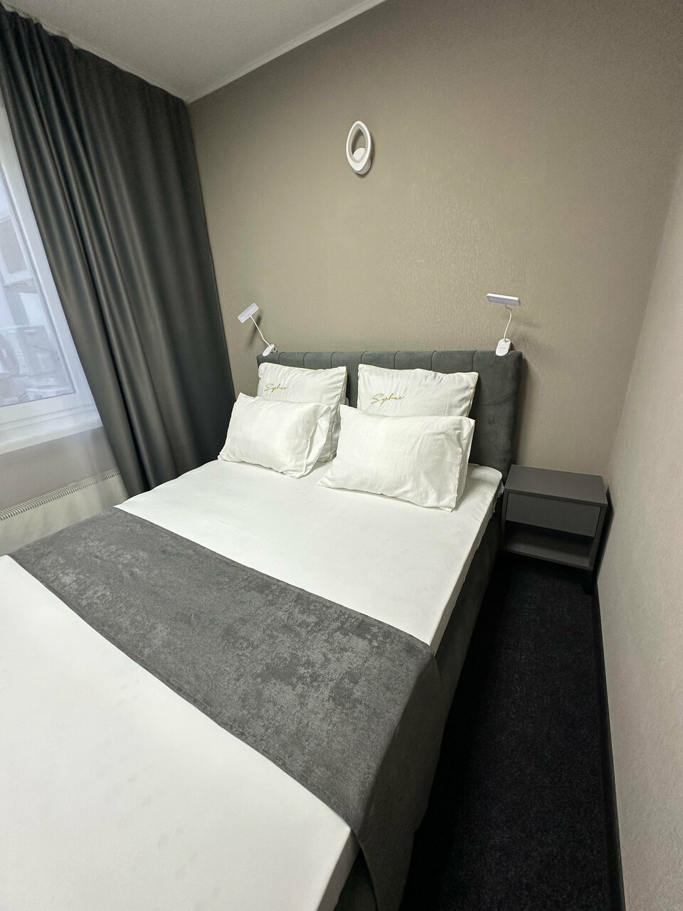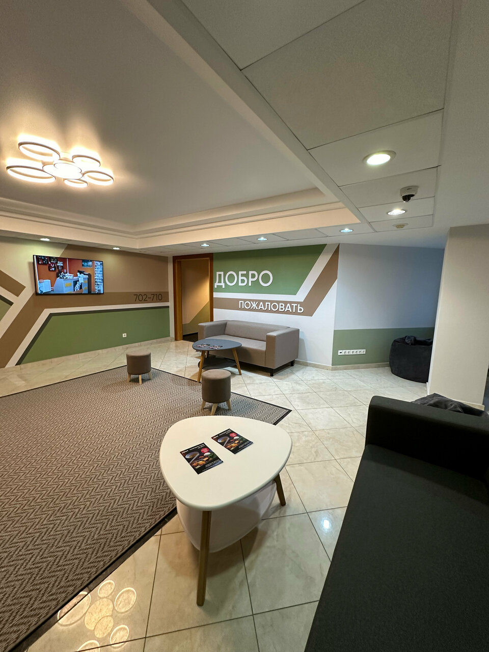 Позиционируют как Новае аппараты, открытые 31.12.2024. Как можно было ушатать сантехнику, двери ща три месяца не совсем понятно. В душевой волосы(уборка никакая), по углам мусор, валяется даже шпилька от волос, кран течет, вода в раковине стоит, в душе тоже стоит, тб пришлось просить. Постельное белье без пододеяльников, хочется надеяться, что их стирали. В связи с тем, что помещения находятся на 7 этаже офисного здания Сбера, в 00.00 все закрывается и в номер не попадешь. Нам это было не актуально, но это надо иметь в виду. Позавтракать можно на 2-м этаже. Есть столовая. Открывается в 8.00. Из плюсов-отличное расположение.