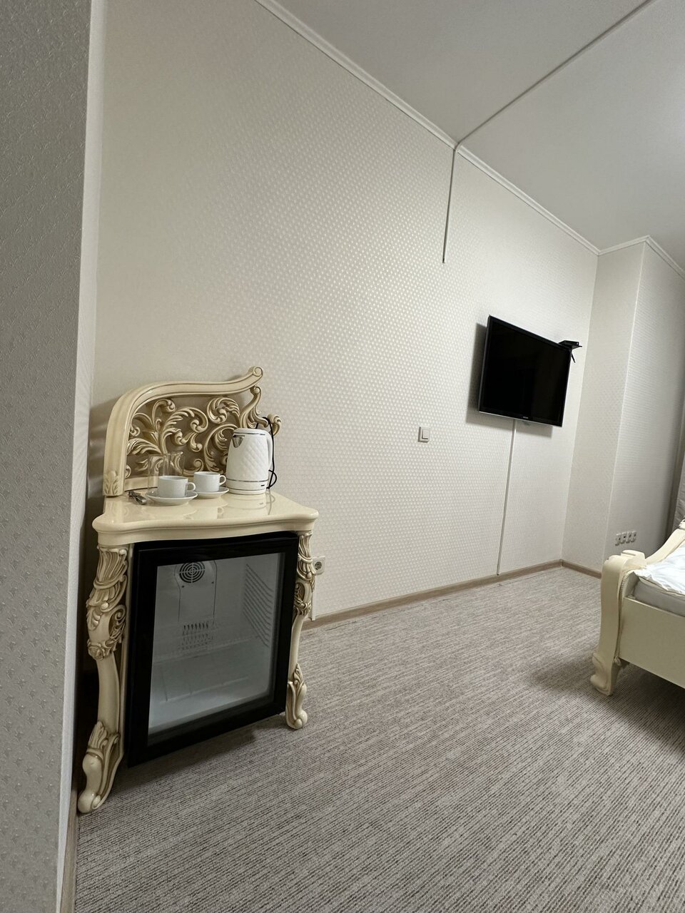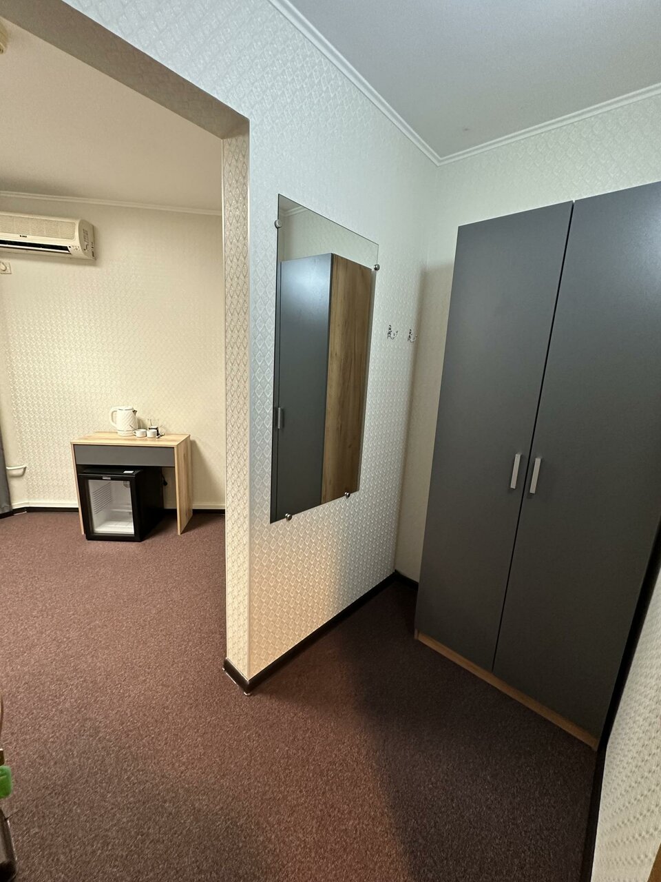 Трехместный номер. Гостиничный номер для размещения 3х человек. 1 двух-спальный диван и 1 одно-спальная кровать. Душ-туалет в номере, кондиционер, холодильник, телевизор, чайник, Wi-fi