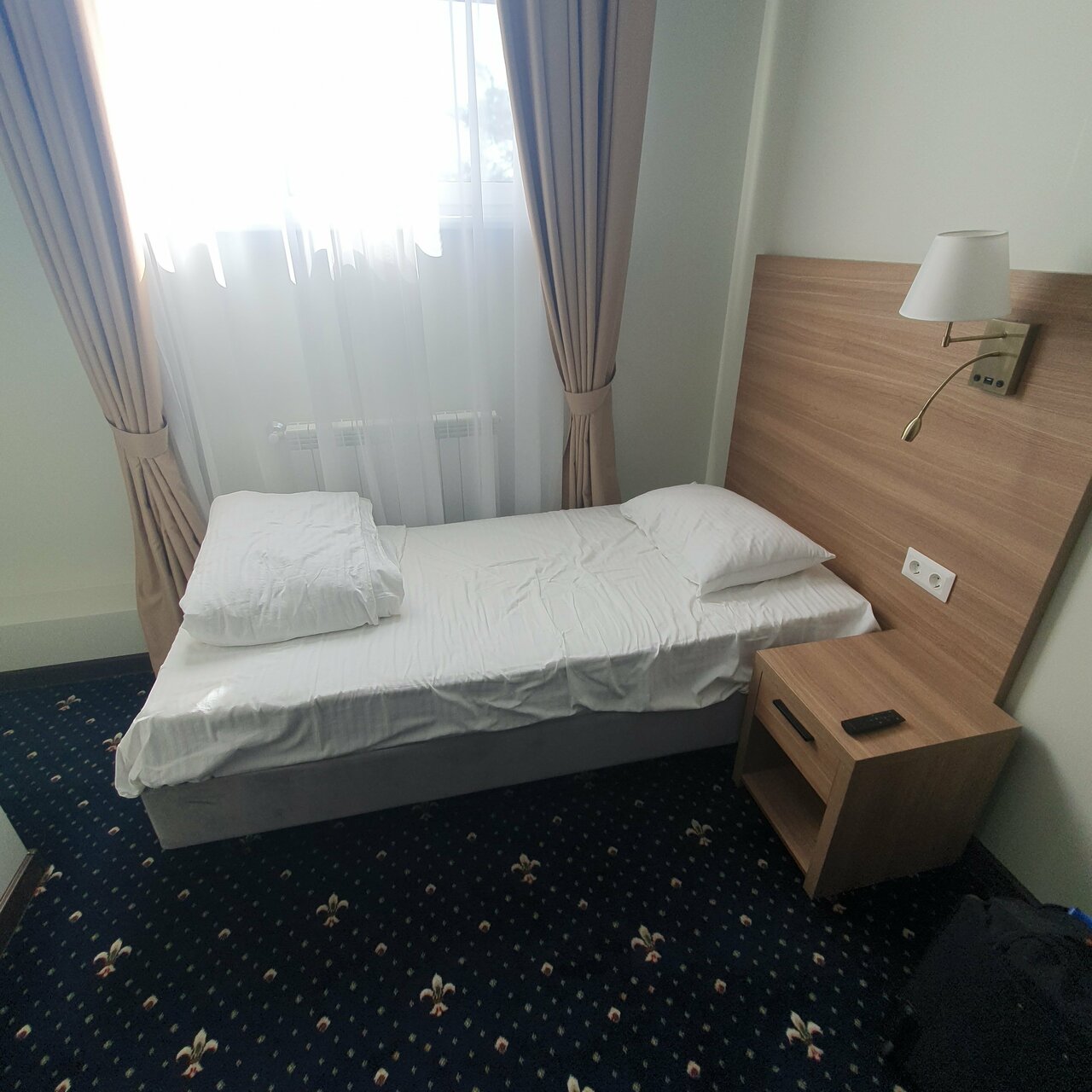 Отличный отель! Останавливались семьей переночевать по пути домой. Номер чистый, приятно пахнет, чистое постельное белье, чай, кофе, чайник, холодильник, кондиционер. Хорошая сантехника, отличный напор воды в душе и все принадлежности для гигиены имеются! Разместили нас в 23:00 приятный персонал. Рекомендуем.