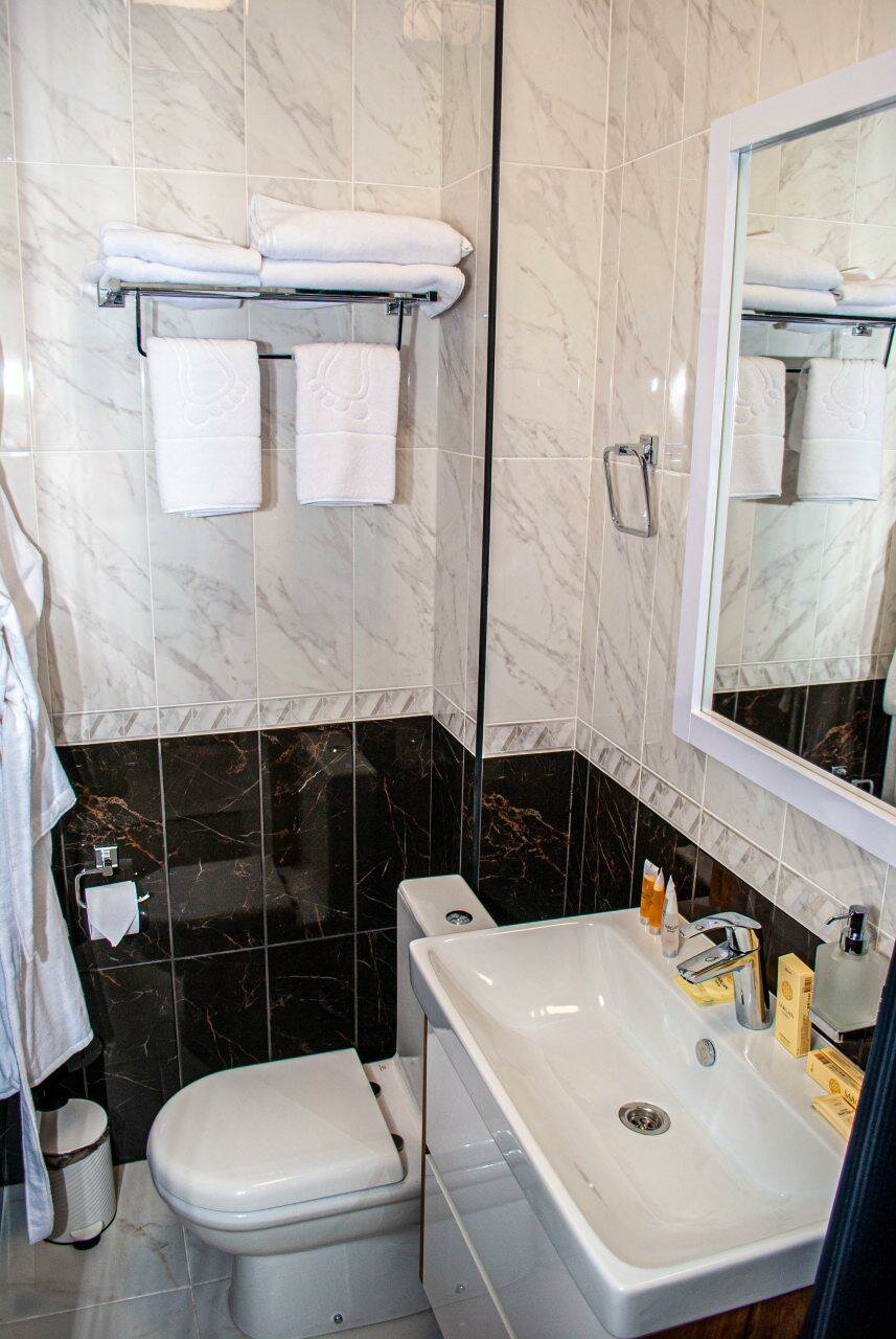 Уставшие,с дороги решили переночевать в этом отеле.Я в восторге. Отель новый,чистый,в номерах продумано всё до мелочей(чайник ,вода,чайные наборы (кофе,чай чёрный/зелёный,сахар)мини холодильник,телевизор, кондиционер Удобные кровати,красивая обстановка,чистейший сан узел,в нем есть тапочки ,фен,полотенца,халаты,зуб щётки с пастой,гели,шампуни,набор для бритья….)Красивые,приветливые девочки на ресепшене.РЕКОМЕНДУЮ