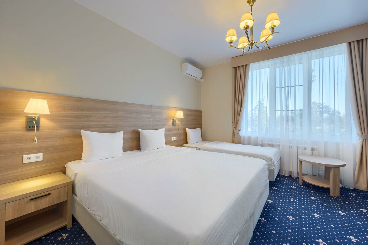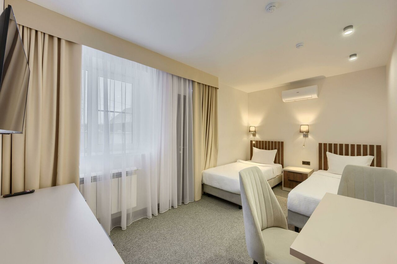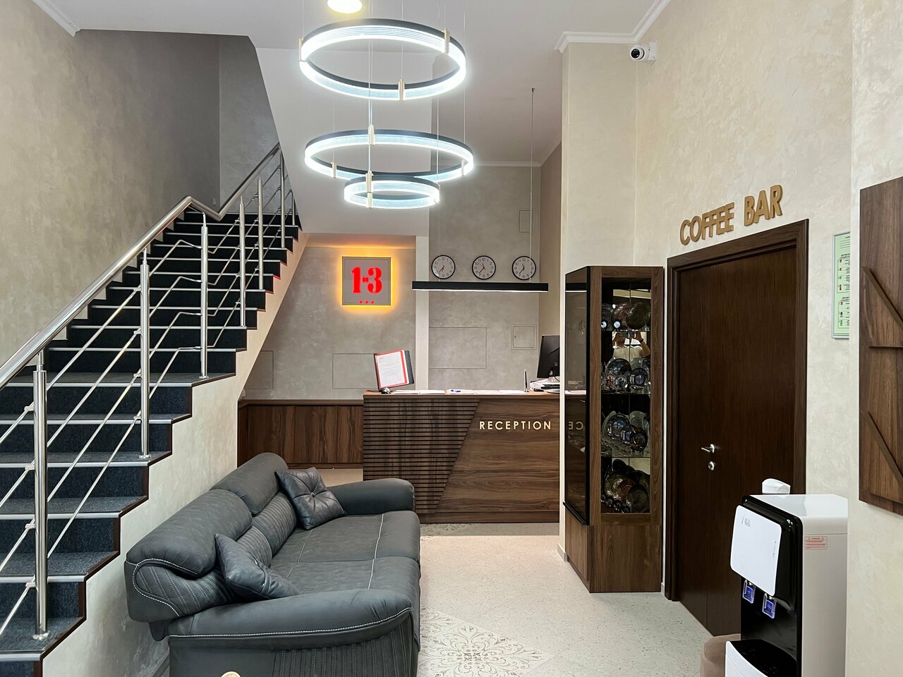 Услуги: — Номера от 3000 ₽/ночь с кондиционером, санузлом, звукоизоляцией, Wi-Fi, телевизором, холодильником, чайником, феном, халатами и тапочками. — Бесплатная парковка, трансфер, камера хранения, сейф, прачечная. — Круглосуточная стойка регистрации, уборка, кафе. — Заезд с 14:00, выезд до 12:00. — Питание: завтрак по меню (не включён в стоимость), чай/кофе в номерах.