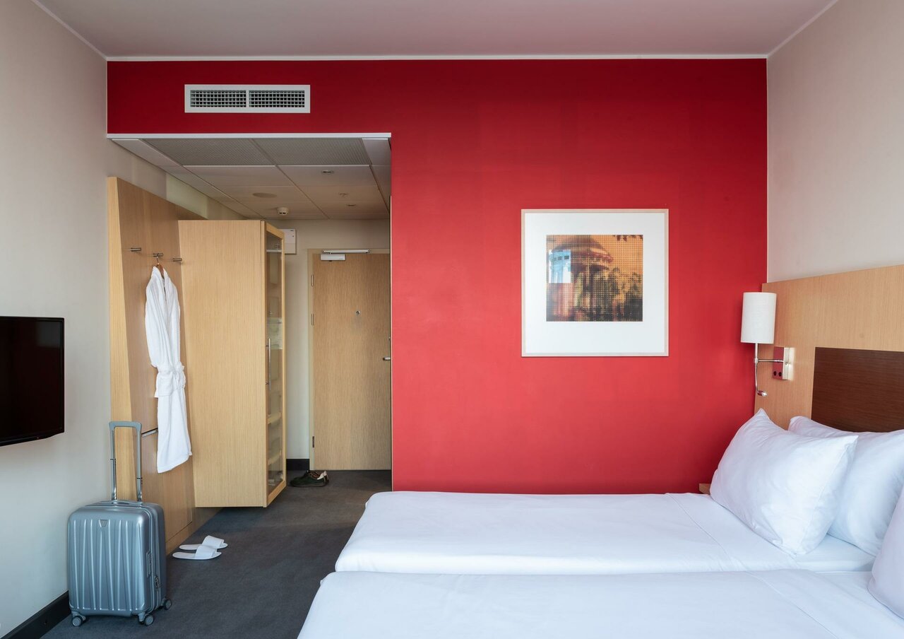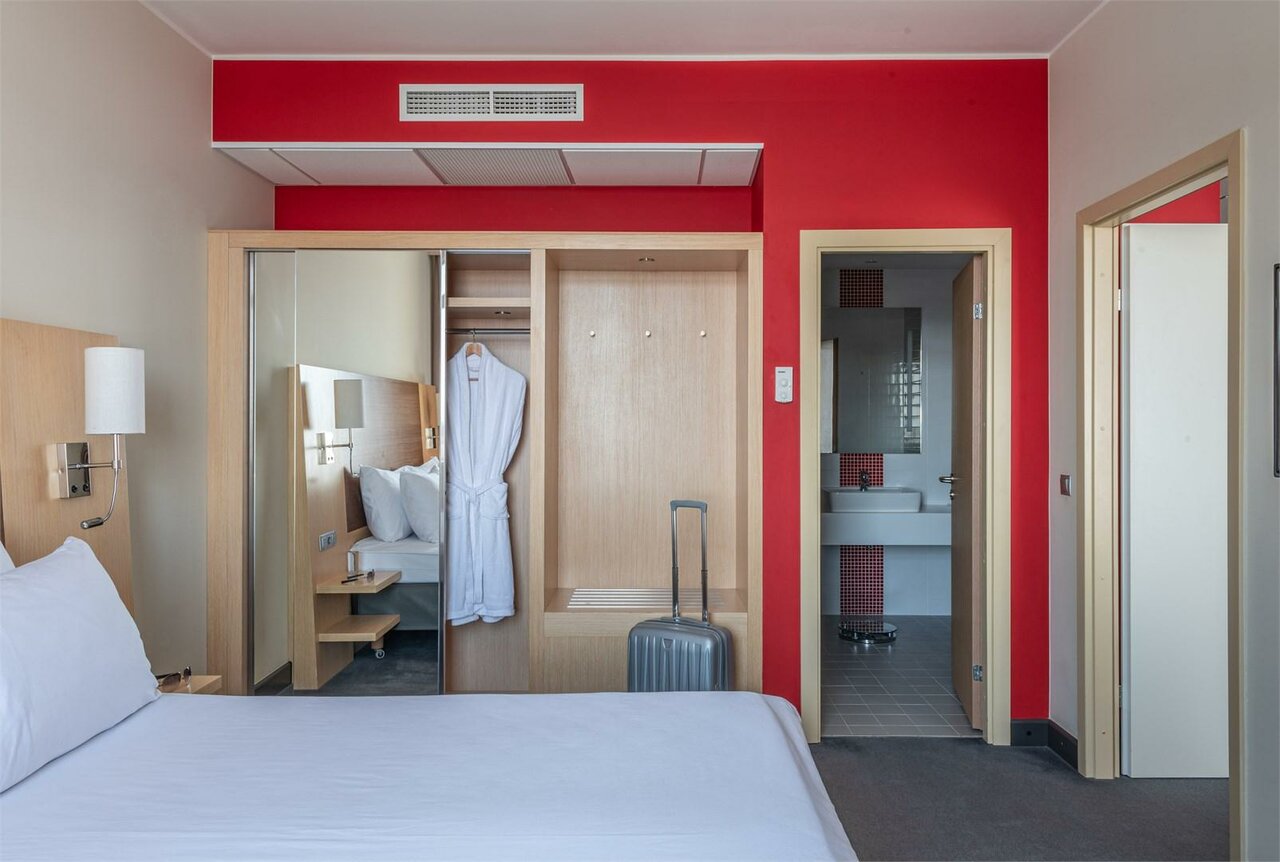 Останавливались тут с 2 детьми, при оформлении нужны документы на всех. Оформили быстро, дольше бегали в машину за свидетельствами. У гостиницы есть удобная парковка прямо у входа. Все чисто, всегда работает оба лифта, в коридоре есть кулер. В номере так же все есть — гели, зубная щетка, чайник и чай, телевизор. В ресторане внизу есть детский уголок и детские стульчики, персонал очень приветлив и во всем помогал и мне и детям. Завтрак разнообразный, есть вариант и для ангаров и для палок и традиционные завтраки, завтрак с 7 до 11. До Родины ехать 7 минут, напротив отеля вокзал, но в номере его не было слышно