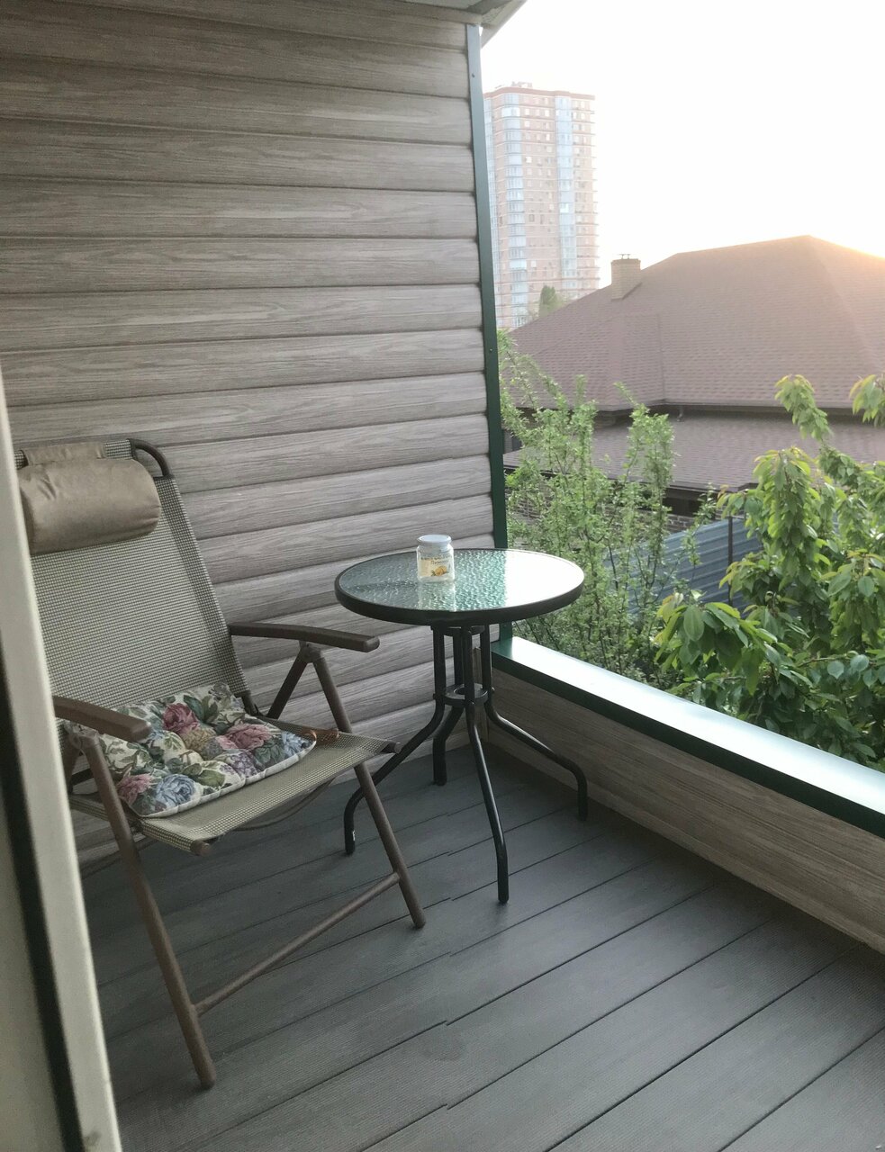 Уютная комната с отдельным входом и большой террасой В номере душ, санузел. Спальные места кровать двуспальная, диван двуспальный. Стол, буфет. Телевизор смарт, чайник, фен, холодильник, сплит. Микроволновая печь, индукционная плита на два номера .