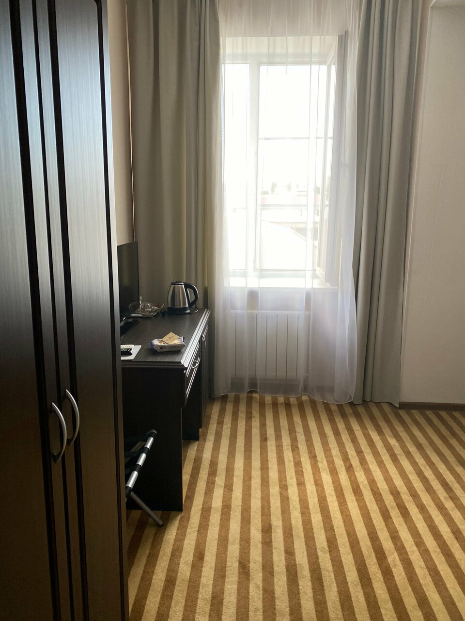 Очень достойная гостиница. В своем ценовом сегменте лучшая, что были в других городах за последнее время. Очень чисто, белье, душ, номер. Номер комфорт большой, светлый. В номере чай, кофе, вода. В душе есть даже лосьон для тела, что почти не встретишь в отеля подобного класса. Очень понравилось, отлично, рекомендую.
