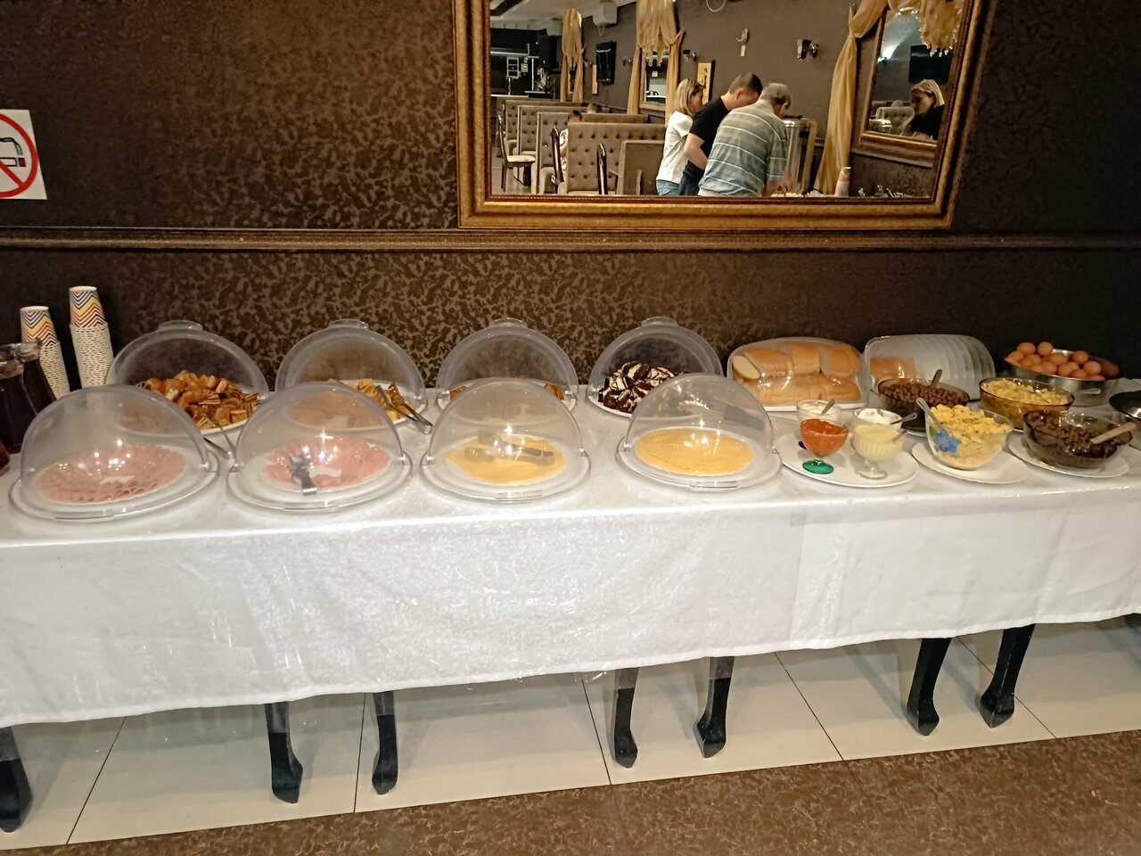 - Хороший выбор выпечки и мясной нарезки на завтрак.