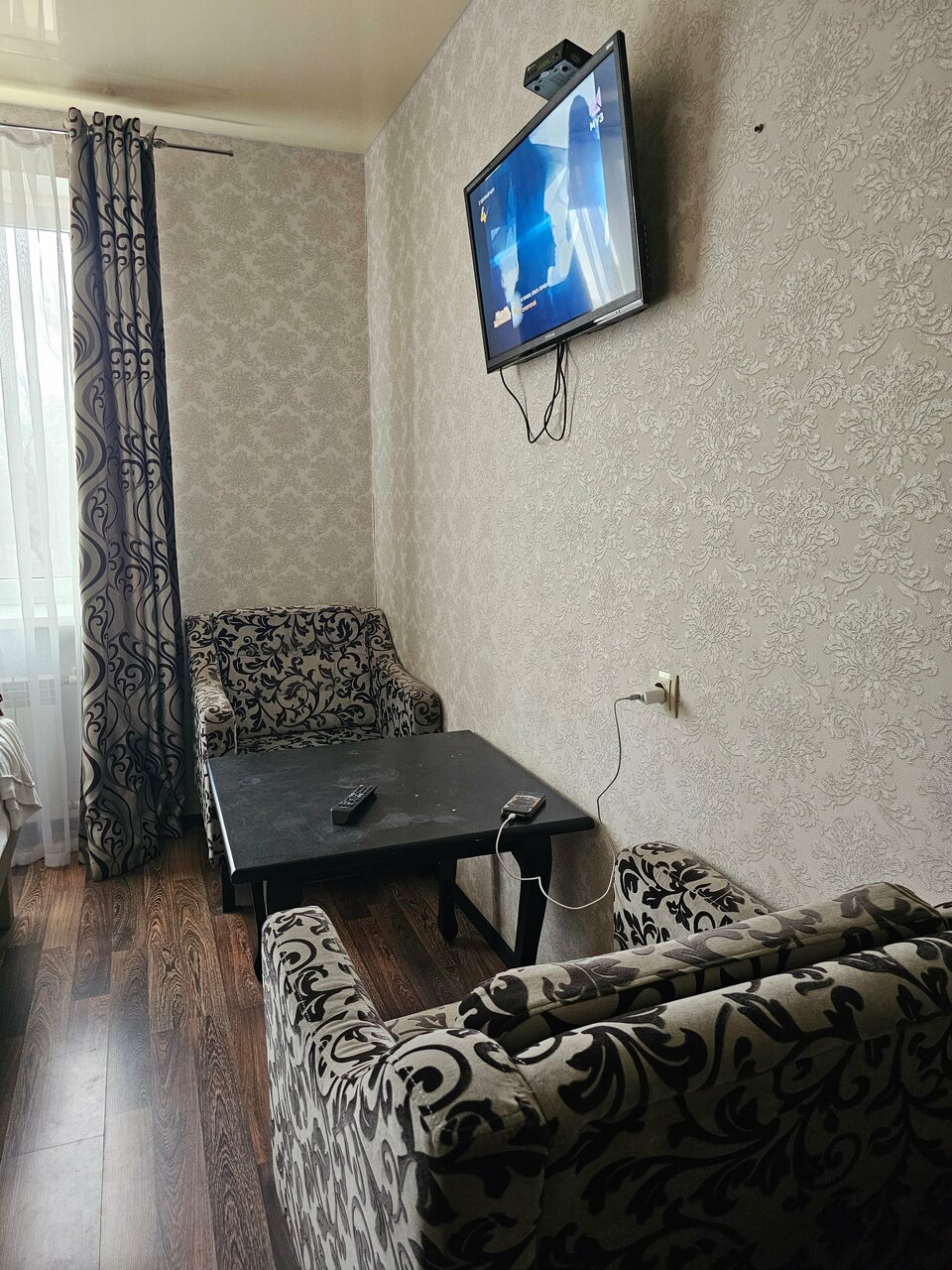 - Устаревшая мебель и ремонт (обои, кровати, ванная).