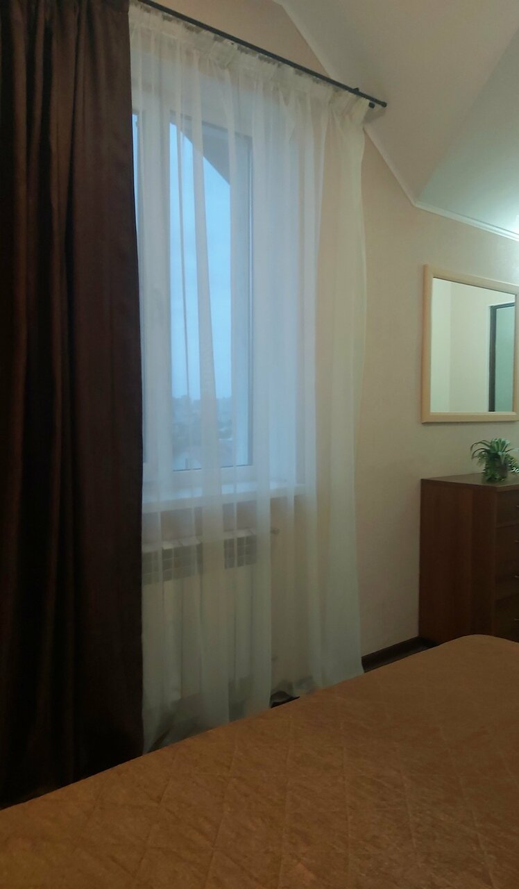 Очень уютный гостевой дом и приветливая хозяйка Мы были проездом на одну ночь, пробки задержали нас в пути и время прибытия оказалось после 12 ночи. Но нам не отказали в комнате, хотя официально время поиска гостей до полуночи. Хозяйка нас дождалась, встретила, проводила в комнату. Белье свежее, полотенца тоже. Двуспальная кровать, раскладной диван, вешалка напольная, зеркало, кондиционер и душевая с туалетом — все необходимые удобства есть, хоть и сама комната не большая. Обошлось в 3 тысячи рублей. Шум улицы не мешал, так как сам гостевой дом стоит не на широкой улице. Отдохнули комфортно всей семьей, утром выехали в нужное нам время, оставив ключи в двери. Да, на мансардном этаже есть общая кухня — попить чай, кофе, перекусить можно с удобством. А во дворе качели, беседка и парковка — уютно Гостевой дом рекомендую, спасибо за отзывчивость и гостеприимство