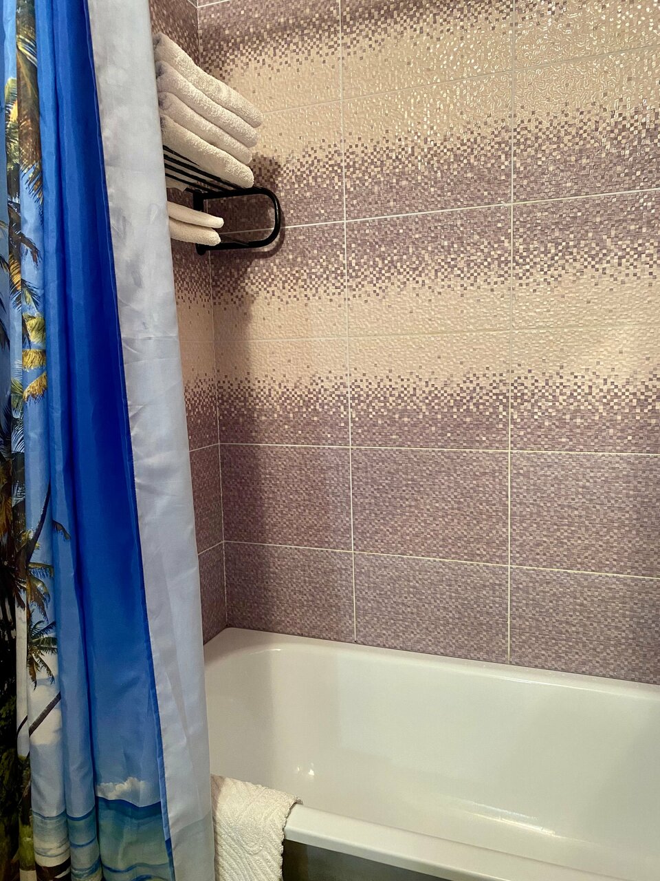 Вроде всё неплохо, НО уборка помещений на крайне низком уровне — в комнате и ванной грязно, посуда грязная. Телевизор для комнаты очень маленький. Кондиционер не справляется. Напротив на здании висят два огромных кондиционера, которые создают постоянный шум. Улица не заасфальтирована. Парковка на улице. Фактически это не Волгоград, а село!