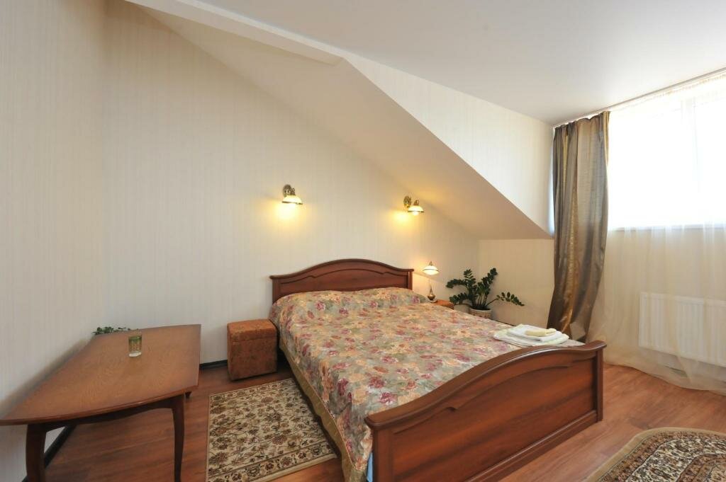 Достаточно приятное место, соотношение цена — качество на уровне, мне достался просторный номер, с двуспальной кроватью, и мягким уголком, маленький холодильник, телевизор на 20 каналов, санузел( с бумагой и мылом) 1500 сутки… Столовая на первом этаже, еда своя, возможно что бы для вас приготовили, цену услуги не скажу, возможно бесплатно)) кухня полноценная, все необходимое есть…