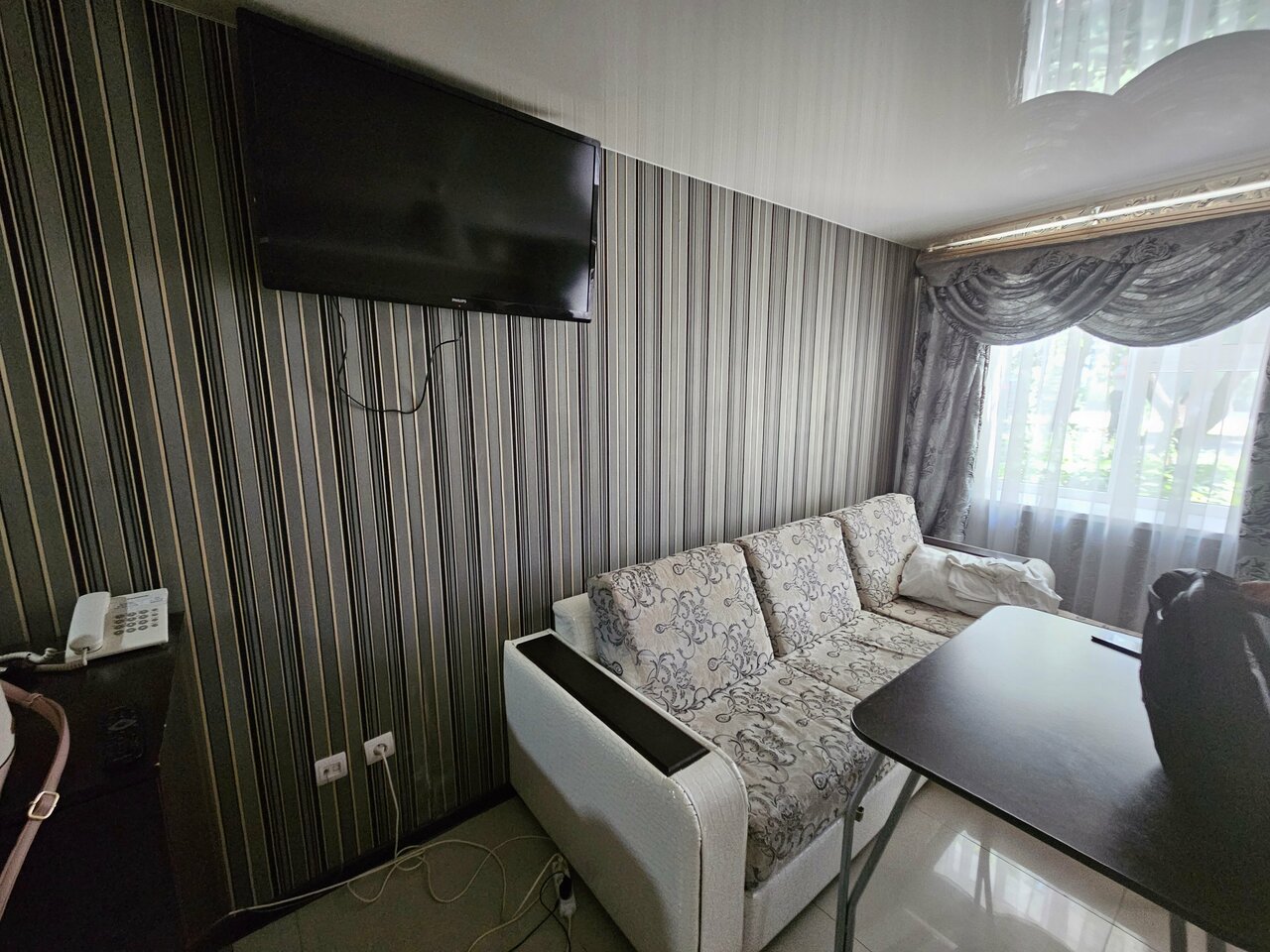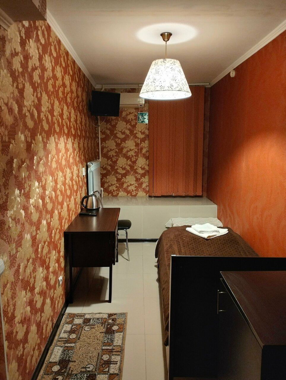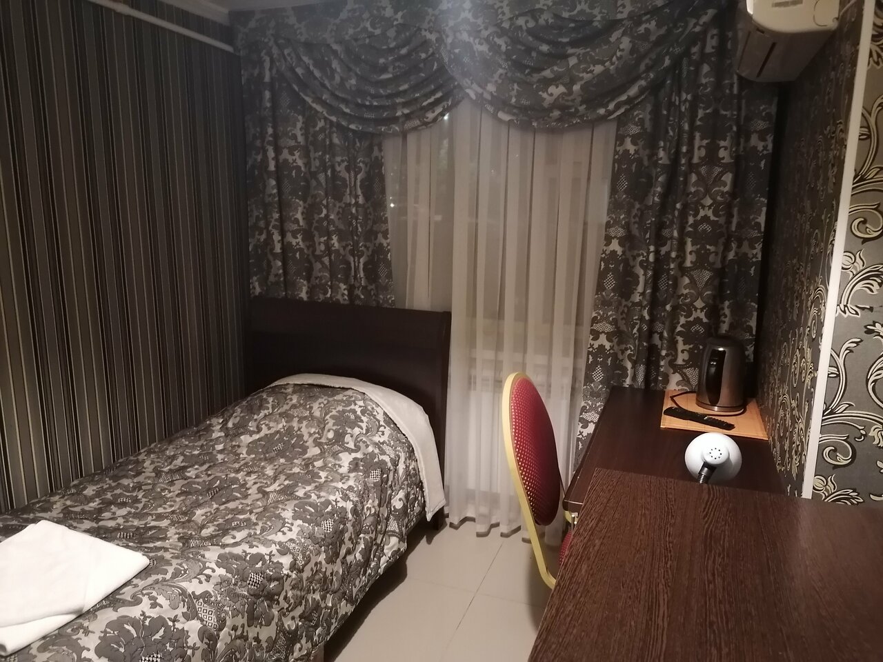 Цена соответствует.За 2000 тыс. одноместный номер + завтрак. На завтраке я не была,ничего сказать не могу,но сам номер мне не понравился. Очень грязно,шумно. Дверь в номер это обычная межкомнатная дверь.Окна выходили на дорогу и было очень шумно.В номере грязно.Унитаз грязный,шторка для душа вся в грибке,душ сам в грибке.Сплит система без пульта.Телевизор показывал с помехами.Мне номер нужен был на на 7 часов можно было и потерпеть.Но больше я там не остановлюсь.