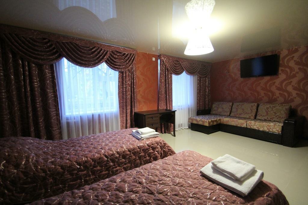 4-х местный номер, с ванной комнатой, жк телевизор, сплит система, ХОЛОДИЛЬНИК,пост-ое бельё, полотенце.Чайник, сахар, чай. Бесплатная , охраняемая парковка ,на закрытой территории,рядом с номером. Цена варьируется от кол-ва чел. Мы ждем Вас.Звоните