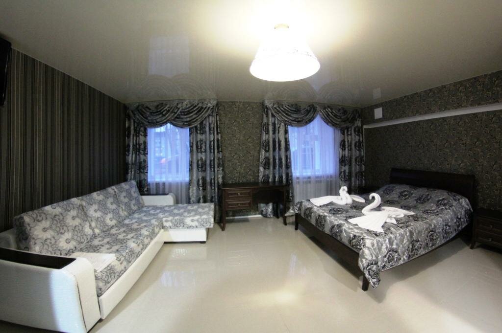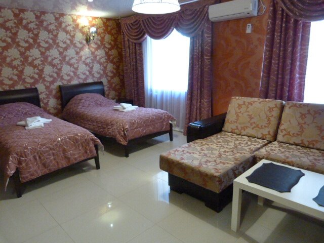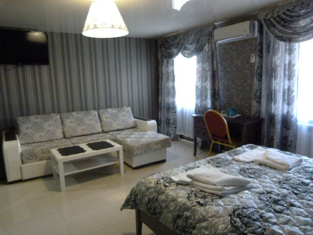 Расположена по адресу: ул. Рокоссовского, 58. Мини-отель уровня 3★ с круглосуточной работой и стойкой регистрации. Номера (от 1800 до 3000 ₽/ночь) оснащены кондиционером, холодильником, Wi-Fi, ТВ, санузлом и звукоизоляцией. До центра — менее 5 км.