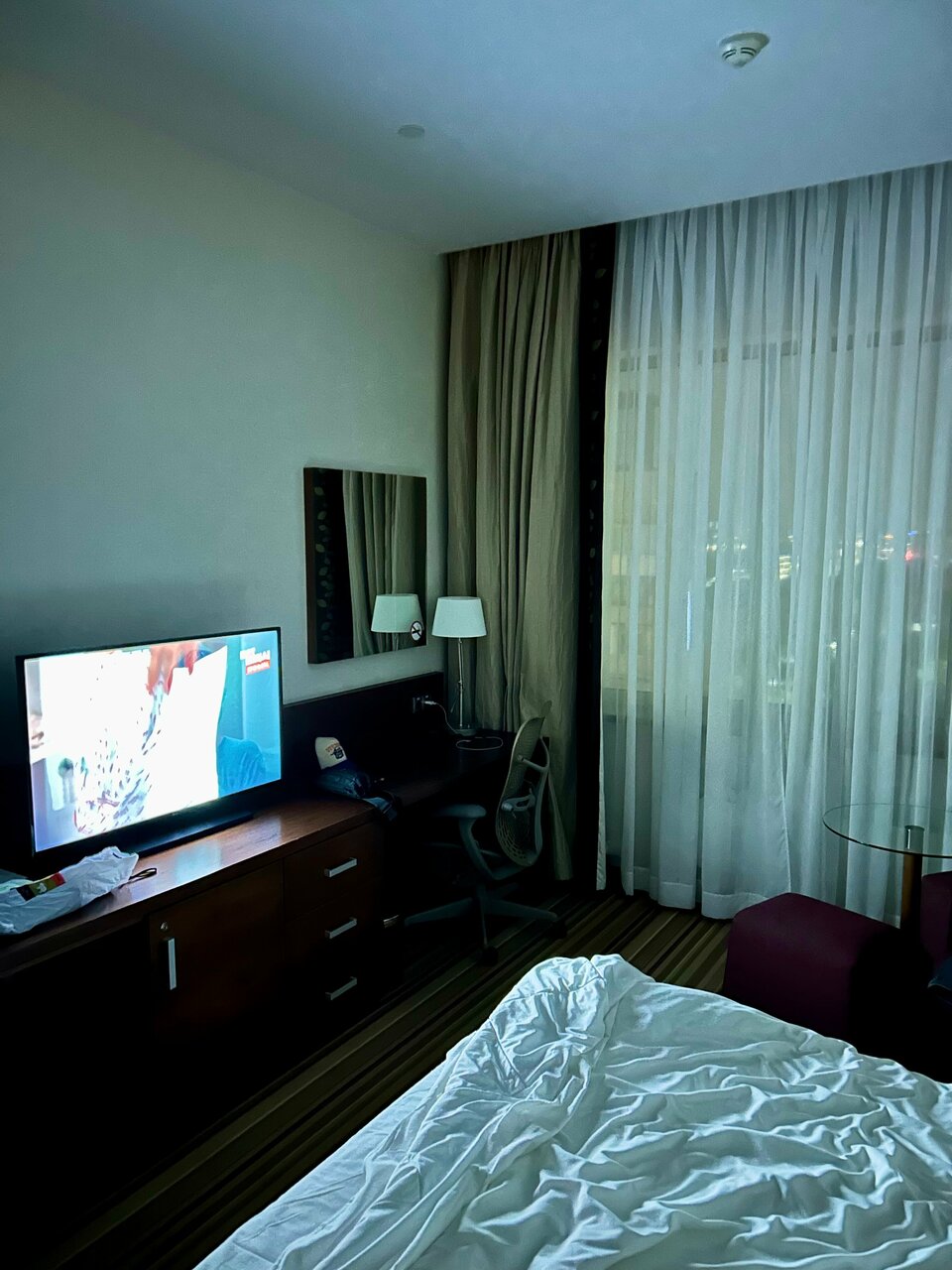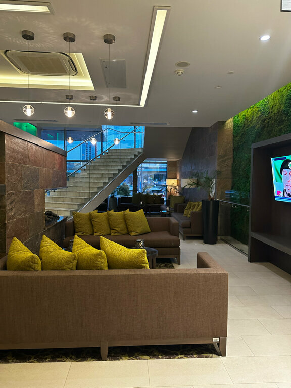 Очень часто останавливаюсь в Хилтонах. Это первый отель из сети, который разочаровал. Шумоизоляция ужасная, я слышала даже как вибрирует телефон в соседнем номере, не говоря уже о кричащих детях или интимном вечере. В номере было холодно, кондей не работал, невозможно было поставить на тепло. В целом номерной фонд уже уставший, требуется реновация. Были в ресторане при заезде, ждали блюда более часа. Закуски (гренки с чесноком) принесли после уже основного блюда. Коктейль просили принести 3 раза. Счет напутали, не включили три позиции. Персонал запаренный, неприветливый. Люблю сетевые отели за стандарты и качество. Менеджменту нужно сделать работу над ошибками