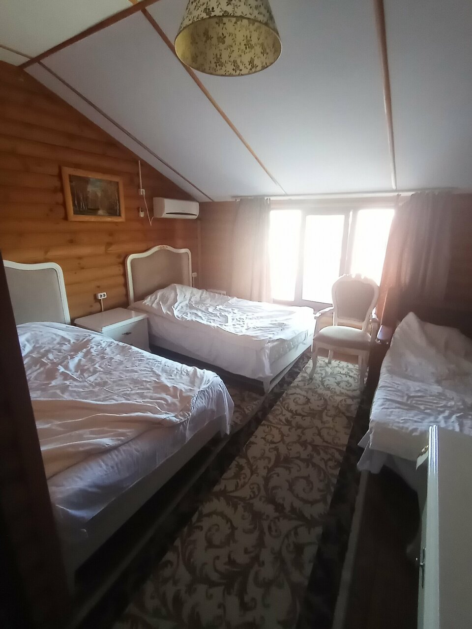 3, 2 этажВ номере расположены две широкие кровати (совмещены), двухспальный диван-кровать, холодильник, ТВ, сплит-система, санузел (душ, умывальник, унитаз). S 28 кв.м.