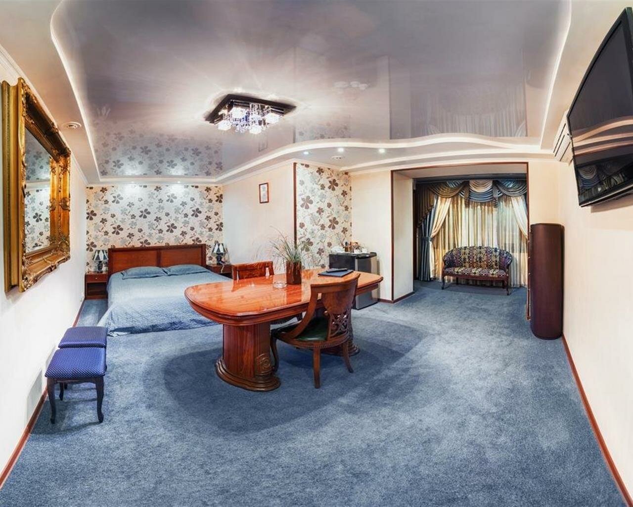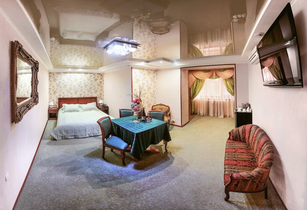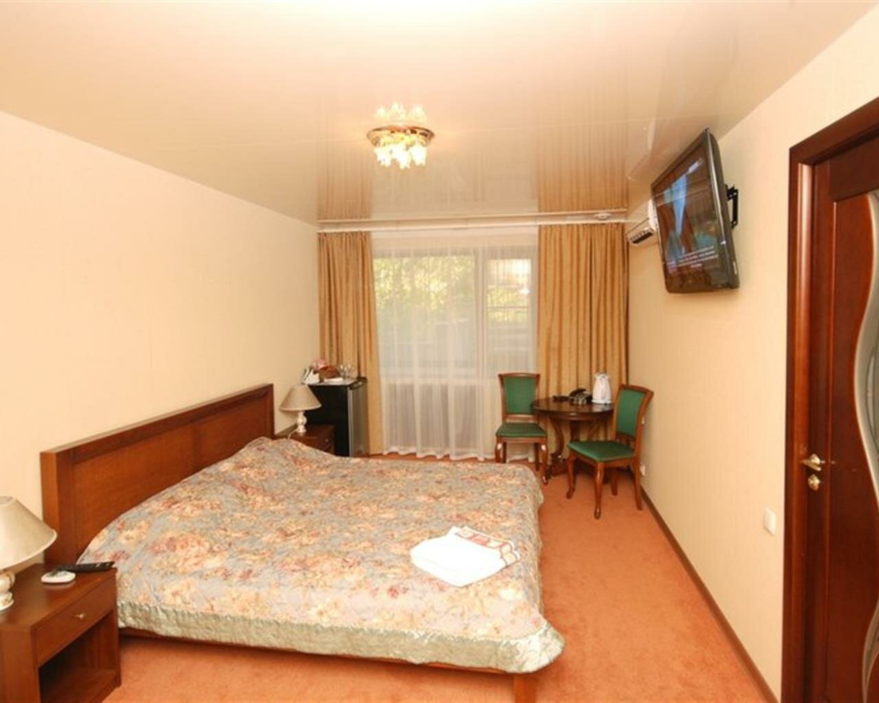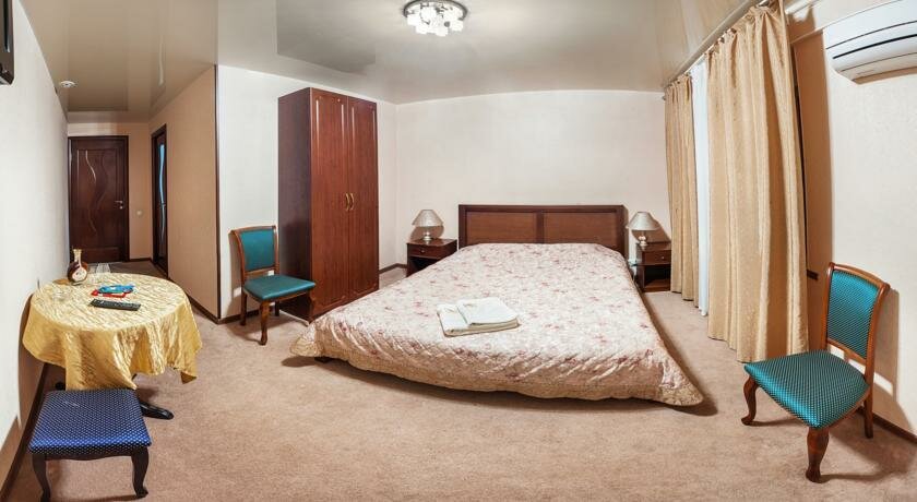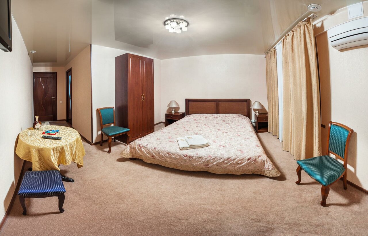 Удобства: — Номера (1500–4000 ₽/ночь) с кондиционером, Wi-Fi, телевизором, мини-баром, чайной станцией, санузлом и феном. — Дополнительно: халаты, тапочки, джакузи (в некоторых номерах). — Бесплатная парковка, летняя веранда, терраса, банкетный зал. — Питание: кафе, ресторан, бар, завтрак (по меню), детское меню.