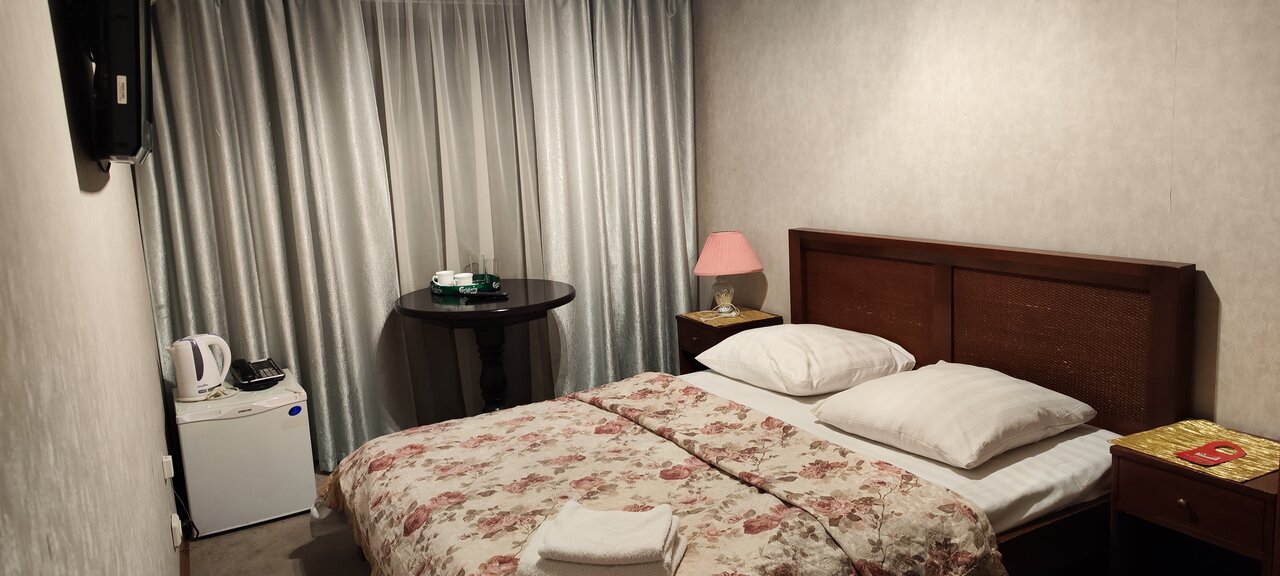Если учитывать, что у отеля 3 звёзды, то в целом очень неплохо. На удивление, довольно приветливый персонал (в отличие от остального города, где при общении с большей частью персонала создаётся легкое ощущение, что тебя только что послали в пешее эротическое путешествие), в номерах чисто, хоть и видно, что отелю уже много лет. Обязательно посетите местное кафе, в нем довольно вкусно готовят по вполне приемлемым ценам (порция шашлыка с картошкой+лаваш+чайник чая обошлись всего в 800. Определенно плюсом является наличие своей небольшой парковки В номерах полотенца, мыльные, холодильник и кондиционер. К минусам могу отнести разве что шумоизоляцию- двери номеров, видимо, достаточно тонкие, поэтому отлично слышно, если кто-то постучался в дверь напротив) А так- отличное место, чтобы остановиться и переночевать пару дней при посещении данного города