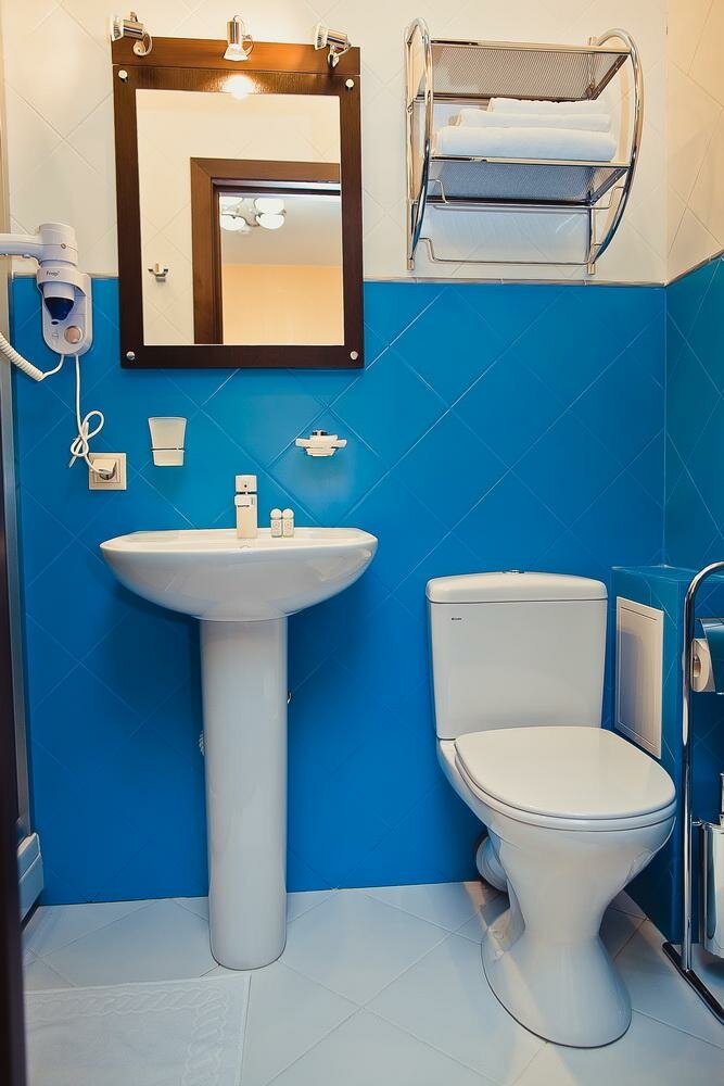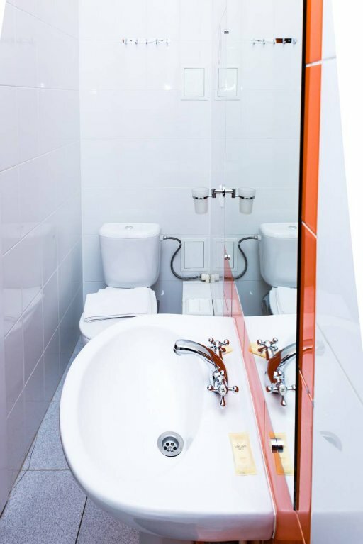 Хороший отель, все необходимое в номере есть: душевая кабина, фен, зеркало. Холодильник работает. На первом этаже есть кулер. Кружек в номере нет. Выдают по два полотенца, как часто меняют, не знаю, останавливались на день. Интерьер приятный, в некоторых номерах есть выход на балкон. Из недостатков — слабая шумоизоляция.