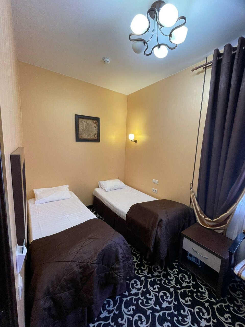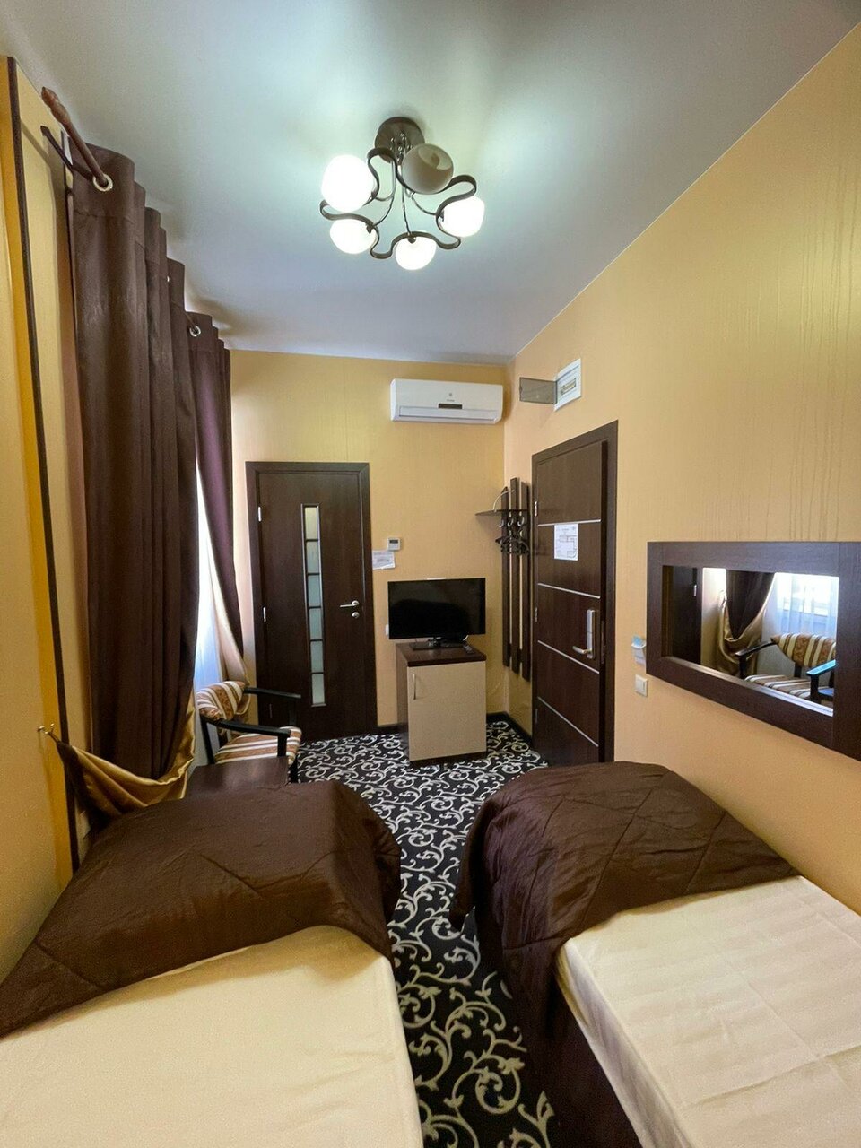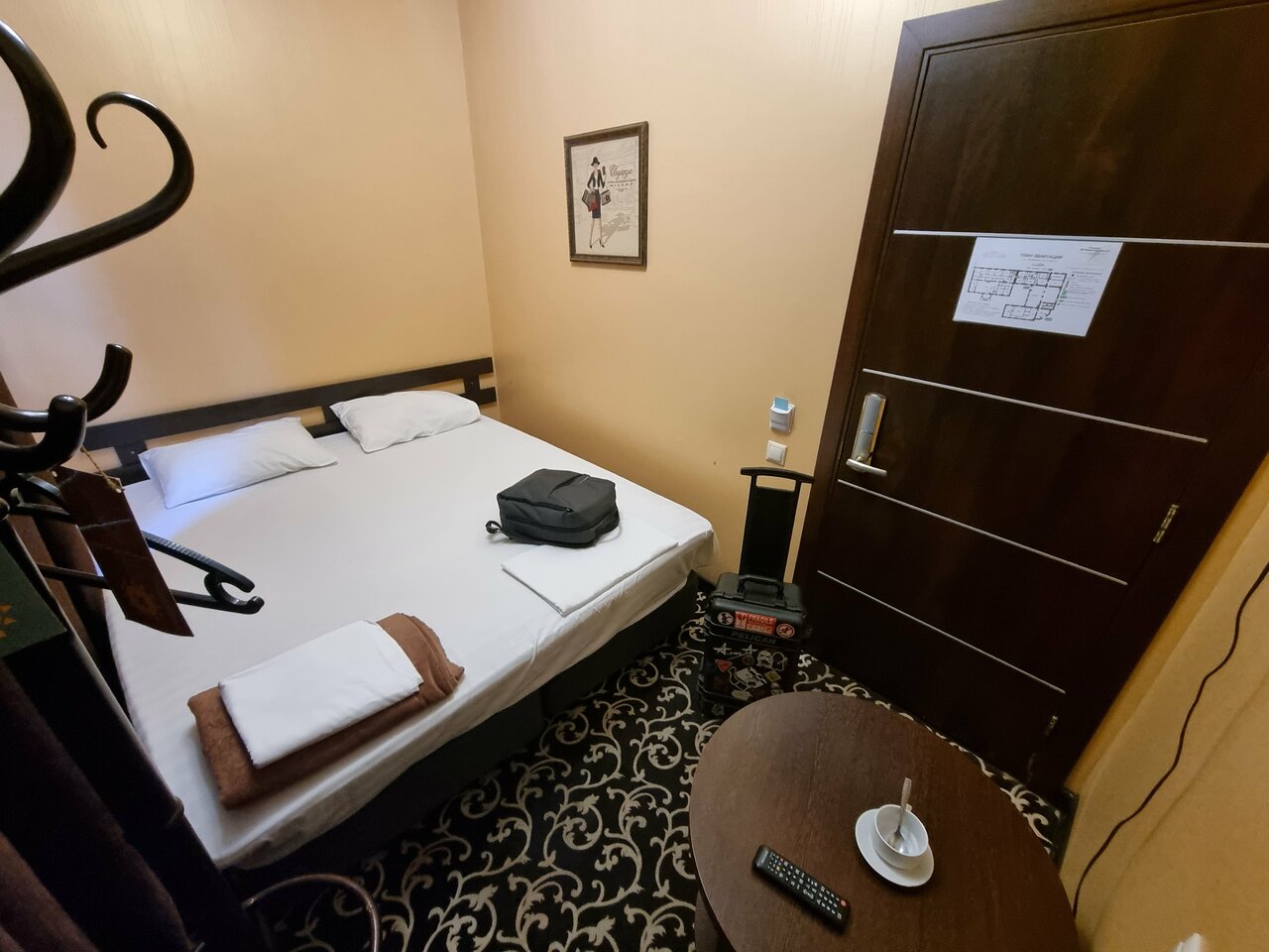 Отель в центре города это плюс.но комнаты маленькие конечно туалет душ всё хорошо.даже есть фен. Кондиционер установлен по бестолковому дует по потолку поток ударяется в стену и идёт в низ прямо в лицо очень не комфортно утром проснулись нос забит горло красное .две кровати односпальные спаренные чайник отсутствует.на ресепшене даже кипяток отсутствует.но при всех плюсах и минусах в принципе четвёрочка слабенькая.