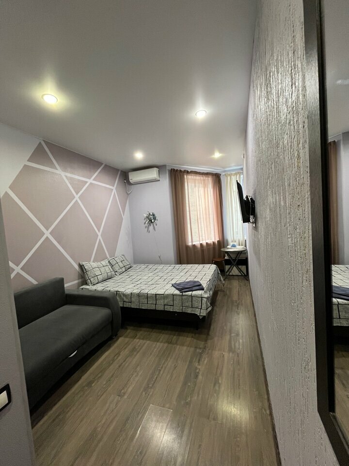 Заезжали посмотреть достопримечательности Волгограда по дороге в Крым. Хороший номер, чисто, удобно! Очень доброжелательный администратор! Общая кухня и холодильник, вай-фай, куллер с водой в коридоре, парковка рядом с домом, расположен недалеко от основных достопримечательностей, тихо и спокойно. Вообщем чувствовали себя как дома! Рекомендую!