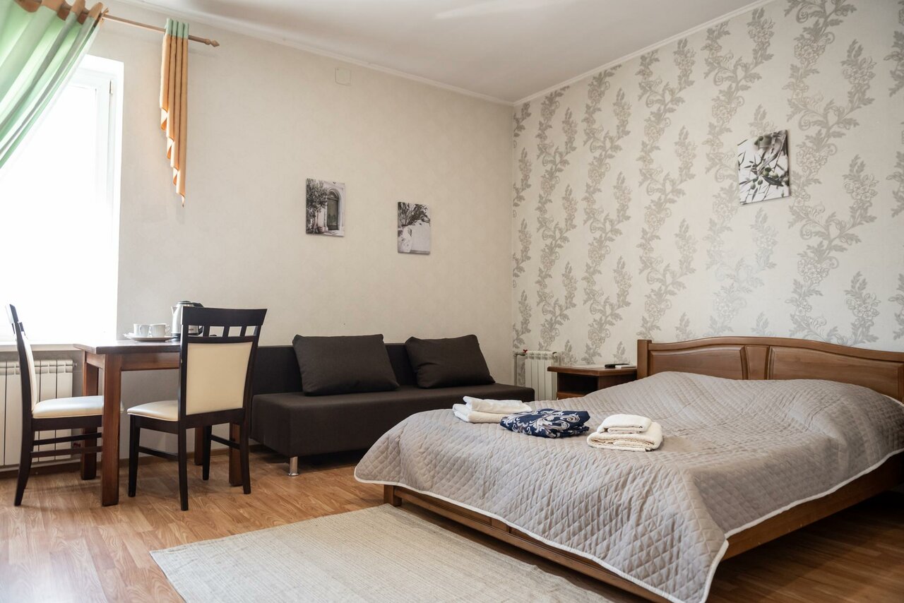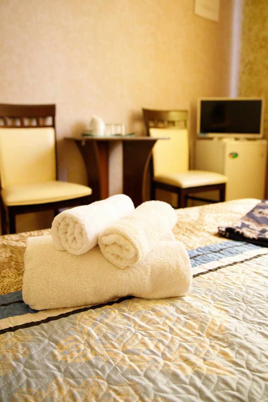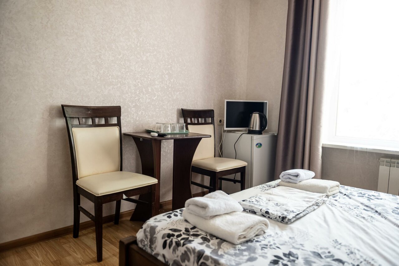 Отличный отель номер был не очень большой но весьма уютный есть все необходимое . Полотенце тапки В целом нареканий нету . Все понравилось Брали без завтраков так как не планировали просыпаться))) Хозяин очень общительный Мы были на мотоцикле, с удовольствием предложил поставить мот во двор под камеры Та же мойка само обслуживания Было очень удобно приехали пошли в номер мотик остыл , спустился помыл и пошлел спать ) красота удобство Персонал очень вежливый и приятный Рядом АЗС запчасти продукты Все близко до центра 5км