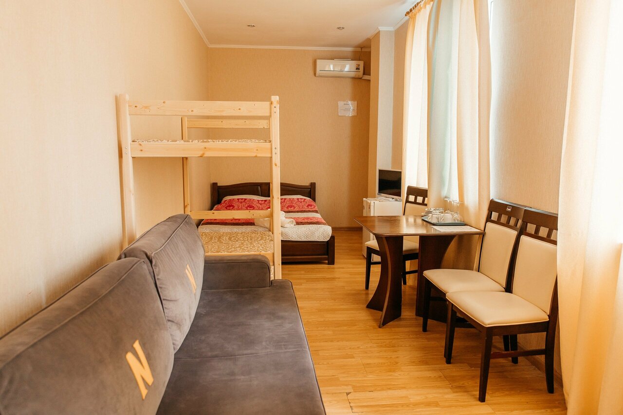 Брали 4-х местный номер для всей семьи. Остались очень довольны. Номер чистенький, есть фен, кондиционер. Очень отзывчивый персонал. Спасибо хозяину за отдых!!!