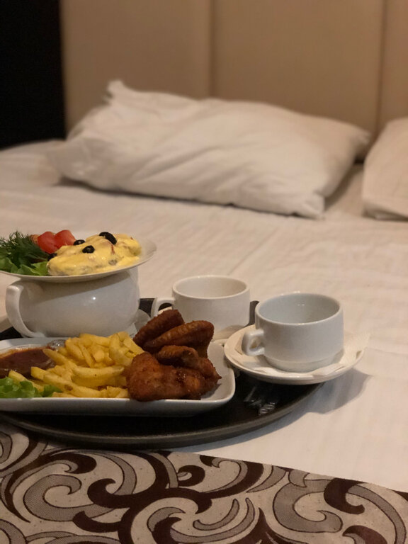Отель в общем не плохой, чтобы провести ночь в дороге. Но есть существенные минусы. Мы брали комфорт. Номер очень маленький.хртя сказали- он больше стандарта. По факту — меньше. Дырка в полу. Пол грязный. Постельное белье грязное, с пятнами. Попросили заменить. Пришла женщина, видимо которая убирает номер ра, и сменила грязное- на грязное белье. Когда мы ей на это указали- сказала- не отстирывается. И это при том, что сейчас море недорогих средств- пятновыводителей. Другого нет. На полотенце тоже были пятна. Так как в ночи, после долгой дороги искать другое жилье не хотели- остались. Но считаю, что на все можно закрыть глаза, кроме чистоты постельного белья. Это критичный момент. Останавливаемся на обратном пути в придорожном мотеле, не первый год, и спим на чистейших кипельно- белых простынях!