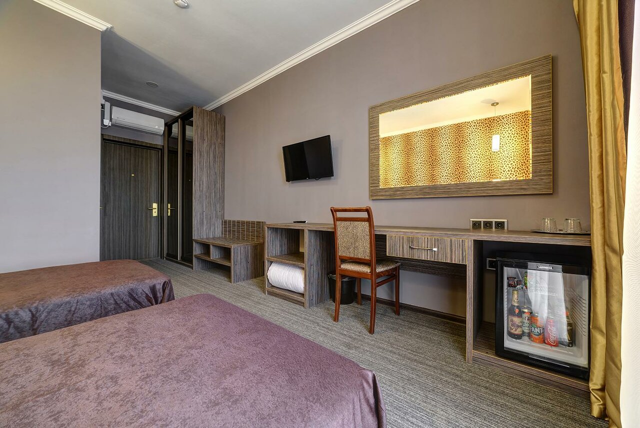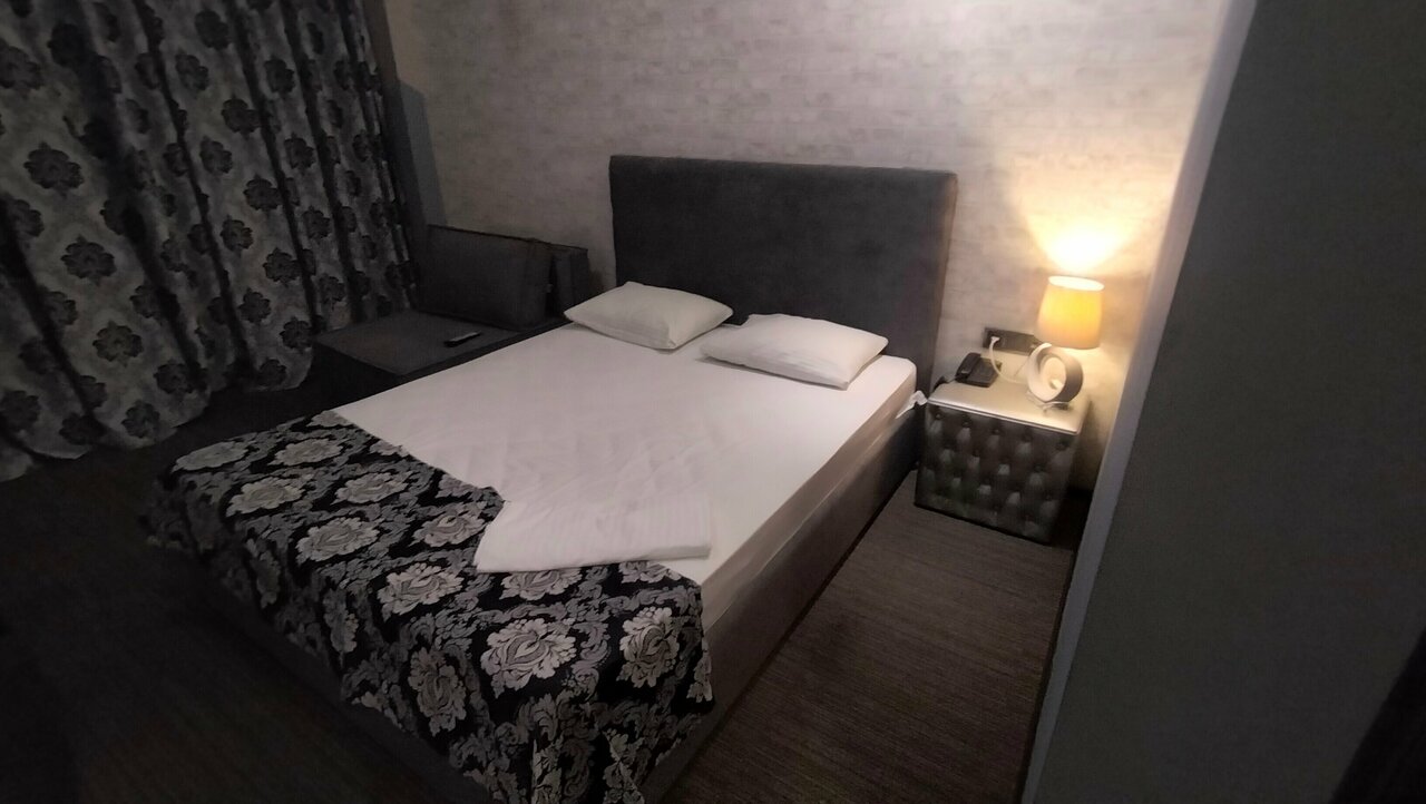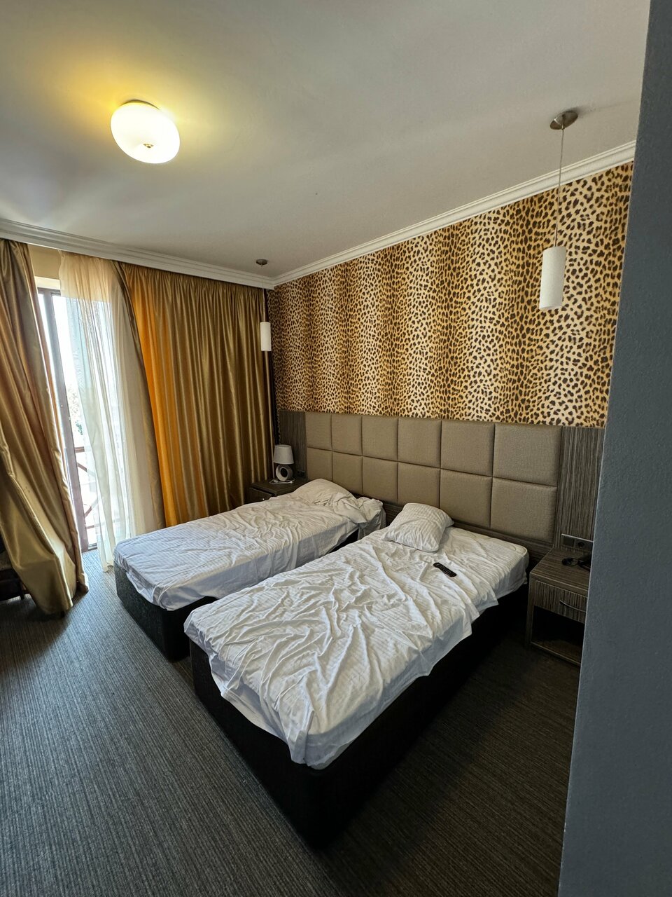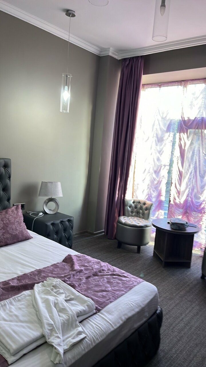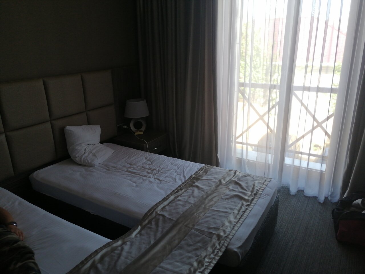 Номер грязный, как будто его не убирали после предыдущих гостей. Постельное все застиранное и в пятнах. В номере на двоих было только одно одеяло с ужасно грязным пододеяльником. Позвонили на ресепшен и попросили принести еще одно и поменять пододеяльник. В результате через полчаса пришлось позвонить повторно, только после этого принесли. Пододеяльники были влажные В душевой старая частично ржавая сантехника, кроме мыла для рук больше ничего из душевых принадлежностей нет. На двоих два больших белых состиранных посеревших полотенца для тела, одно для ног и еще одно не понятно для кого. Видимо лицо мы по очереди должны были вытирать. О каких вообще 3 звездах может идти речь?!