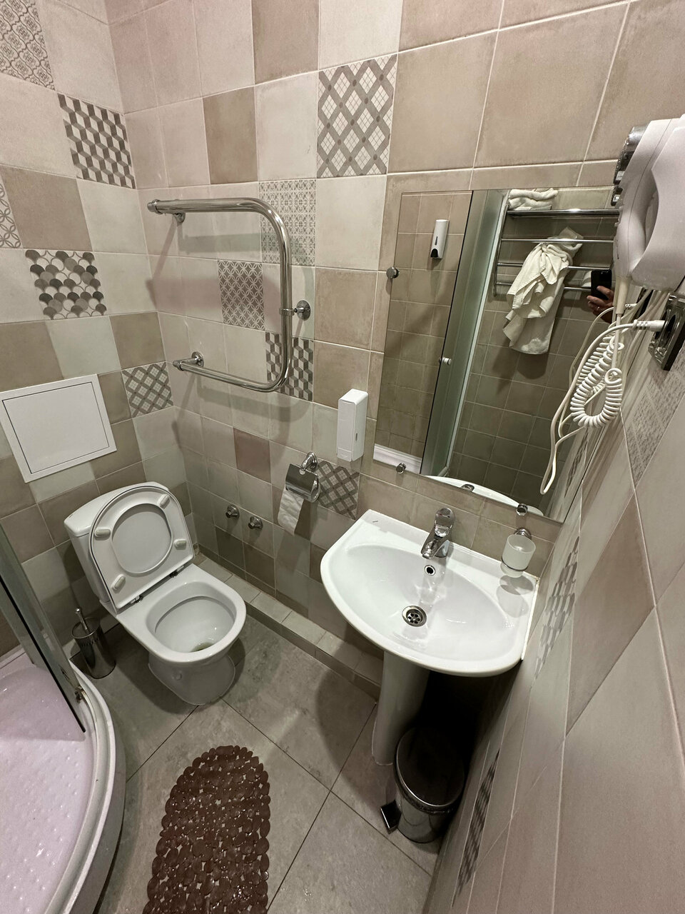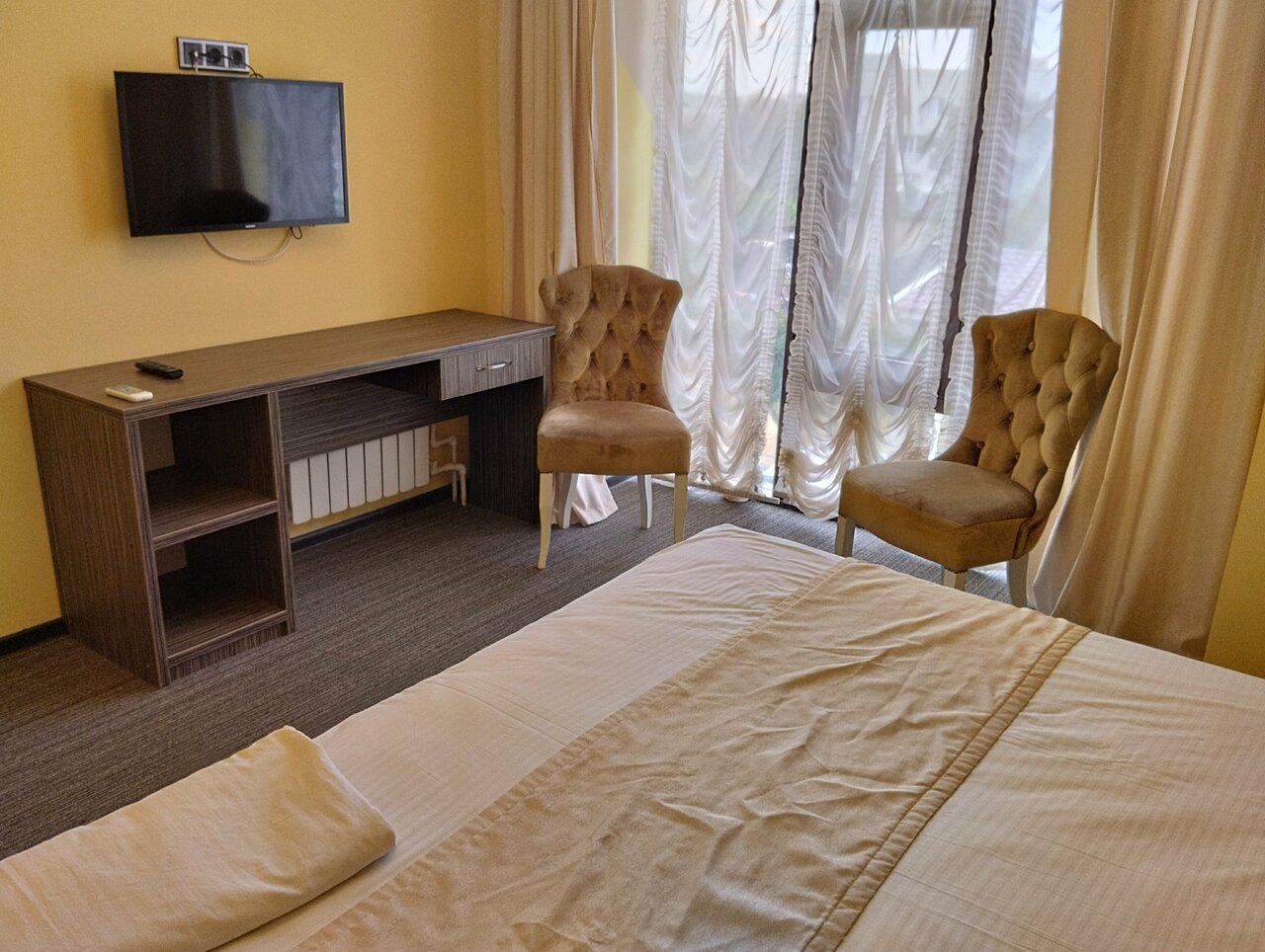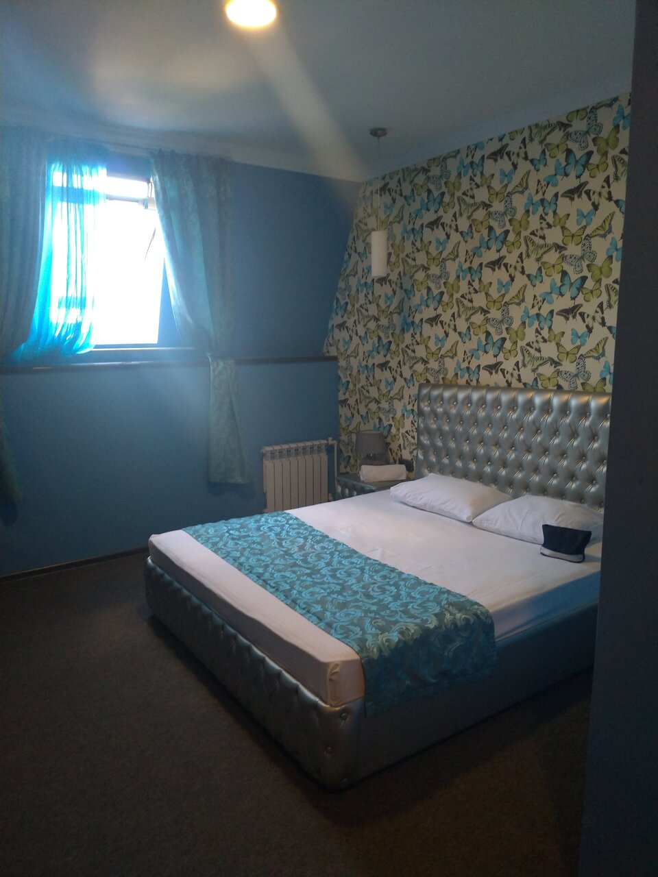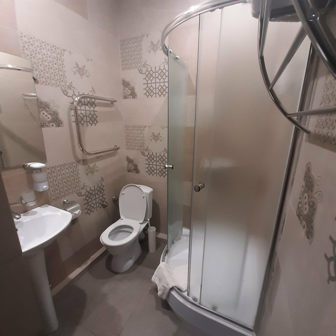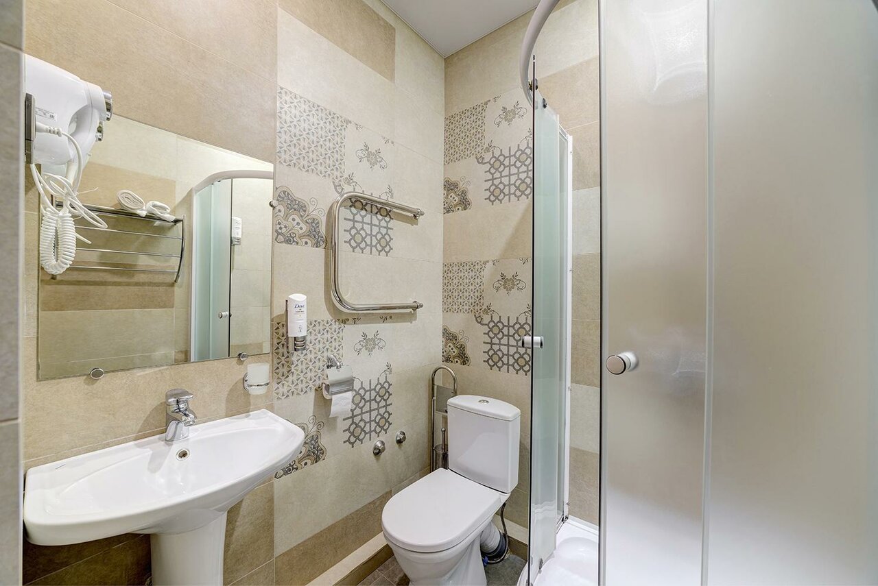 Номер грязный, как будто его не убирали после предыдущих гостей. Постельное все застиранное и в пятнах. В номере на двоих было только одно одеяло с ужасно грязным пододеяльником. Позвонили на ресепшен и попросили принести еще одно и поменять пододеяльник. В результате через полчаса пришлось позвонить повторно, только после этого принесли. Пододеяльники были влажные В душевой старая частично ржавая сантехника, кроме мыла для рук больше ничего из душевых принадлежностей нет. На двоих два больших белых состиранных посеревших полотенца для тела, одно для ног и еще одно не понятно для кого. Видимо лицо мы по очереди должны были вытирать. О каких вообще 3 звездах может идти речь?!