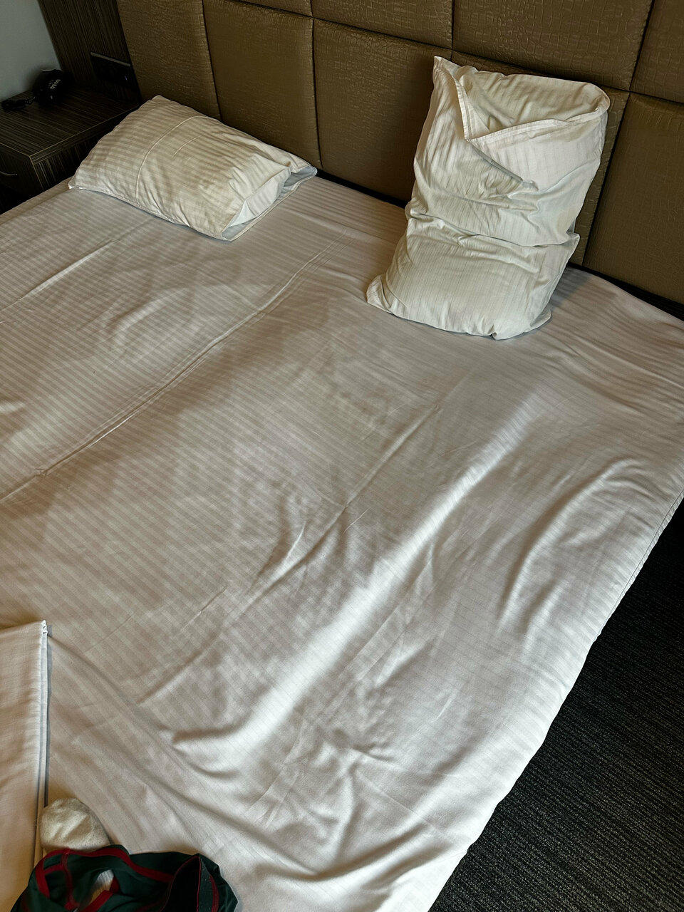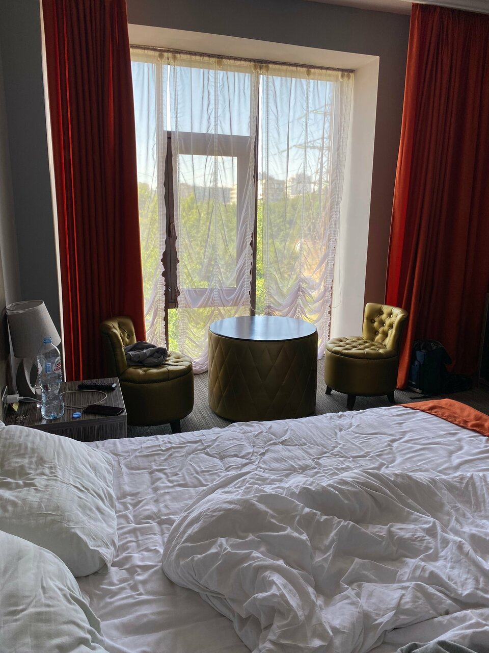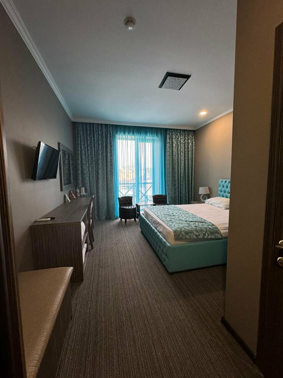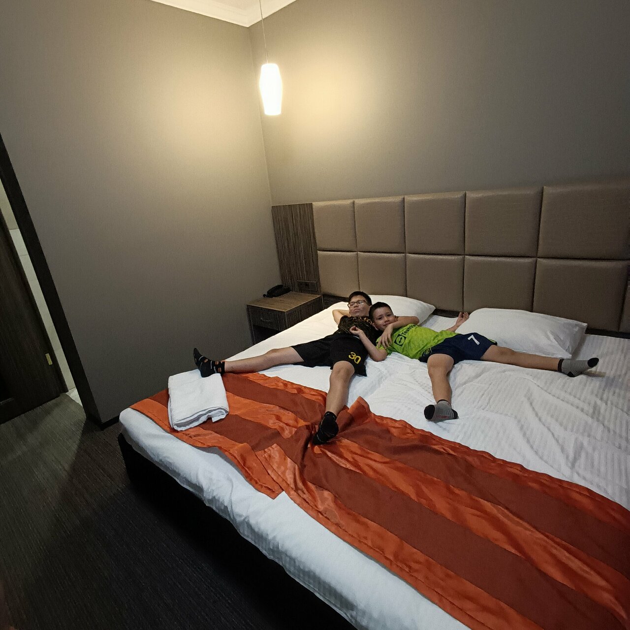 Номер грязный, как будто его не убирали после предыдущих гостей. Постельное все застиранное и в пятнах. В номере на двоих было только одно одеяло с ужасно грязным пододеяльником. Позвонили на ресепшен и попросили принести еще одно и поменять пододеяльник. В результате через полчаса пришлось позвонить повторно, только после этого принесли. Пододеяльники были влажные В душевой старая частично ржавая сантехника, кроме мыла для рук больше ничего из душевых принадлежностей нет. На двоих два больших белых состиранных посеревших полотенца для тела, одно для ног и еще одно не понятно для кого. Видимо лицо мы по очереди должны были вытирать. О каких вообще 3 звездах может идти речь?!