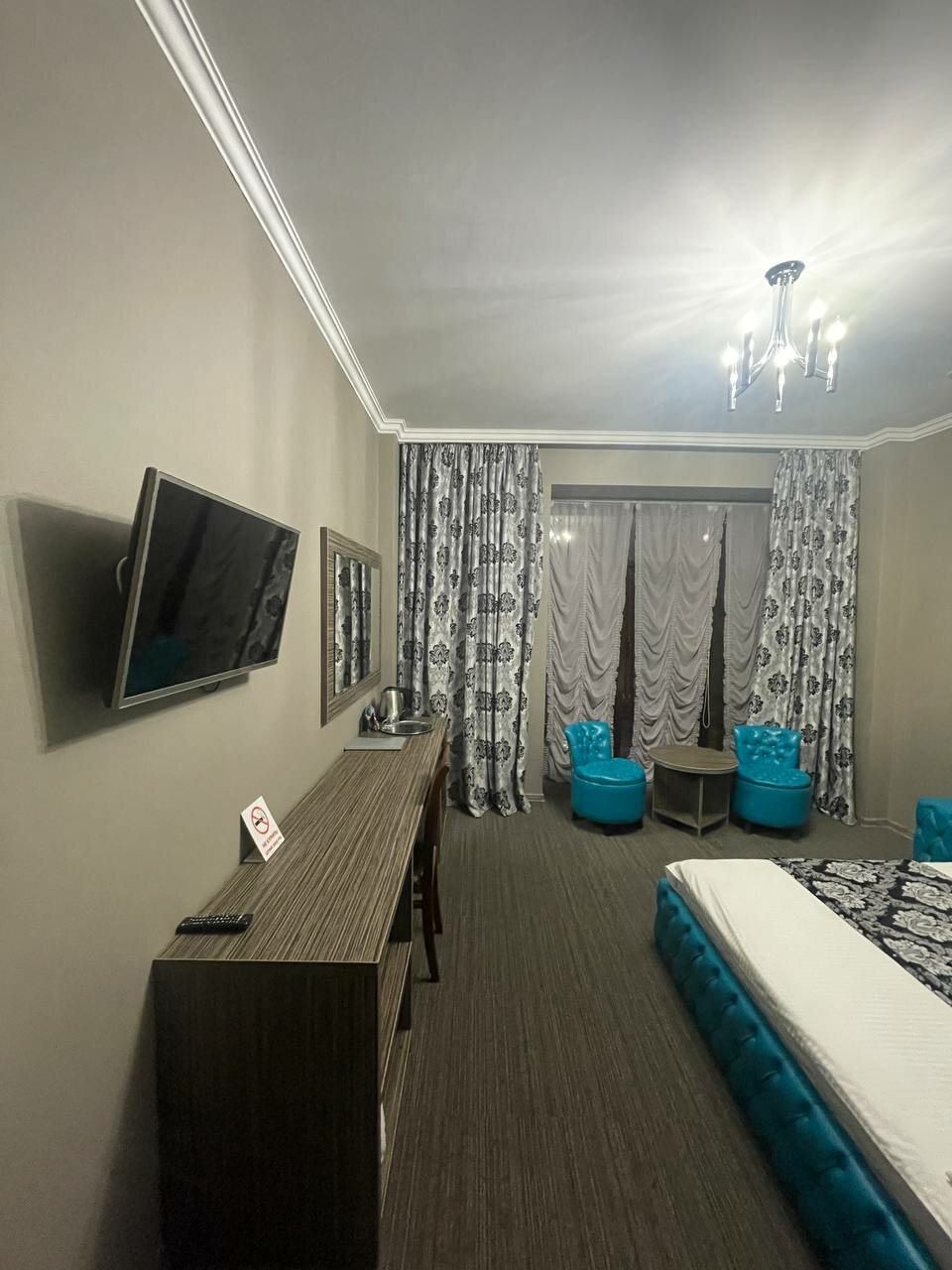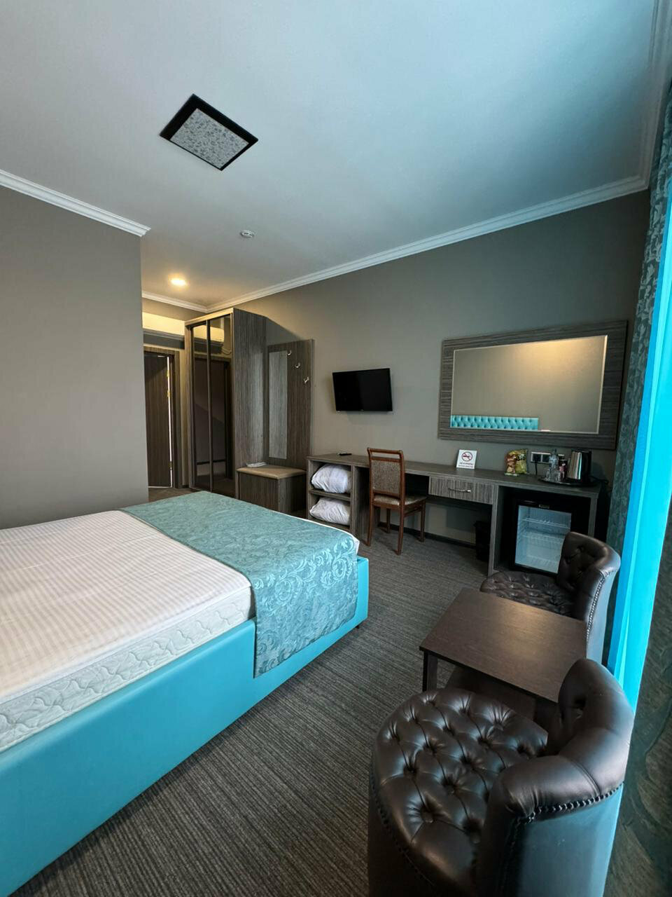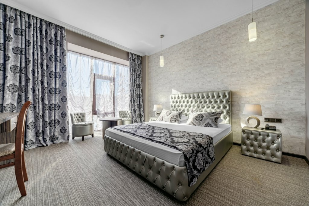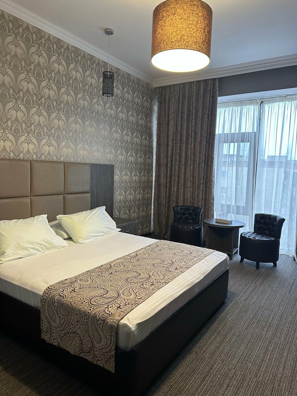 Отель на одну звезду! Номер категории Люкс встретит вас с постельным бельем серого цвета. Т.к. белье в обороте уже несколько лет т просто поменяло цвет от времени. Белоснежные полотенца с пятнами (которые уже не отстирываются) от прошлых гостей. Также в номере будет не сложно найти волосы от прошлых гостей. Про комплимент в виде чистой бутылочки воды в номере — это роскошь. Но воду вы сможете купить на первом этаже в баре. Уровень заинтересованности и доброжелательности персонала требует отдельного внимания…. словами не передать! Вывод ‘Не рекомендую данный отель’.