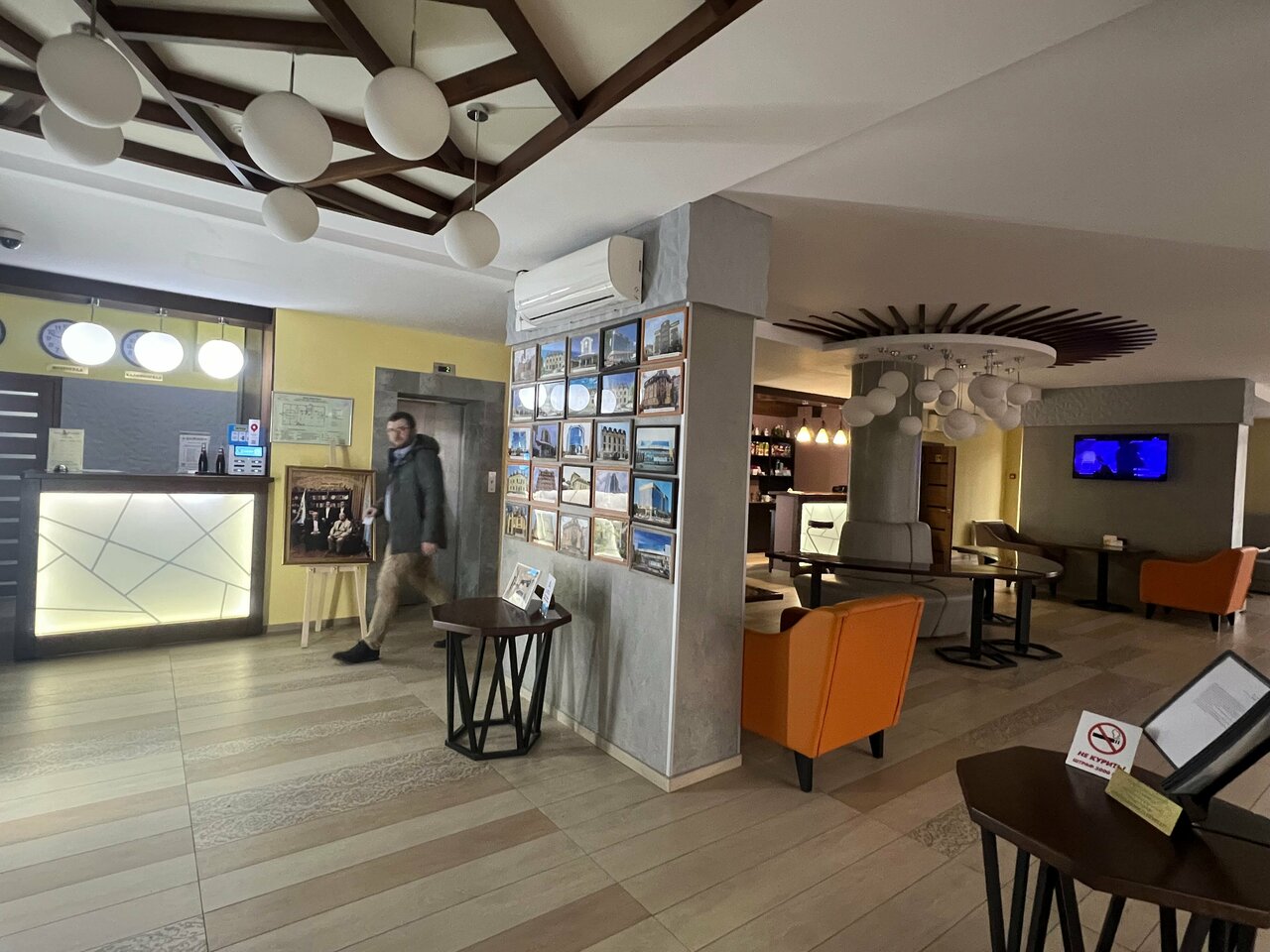 Прекрасный отель. Заранее забронировал и оплатил. Заселили моментально. Номер на 1 этаже. Уютно, чисто, а главное, тихо. Вроде бы номер находится рядом с ресепшн, но в номер не доносится ни звука. На первом же этаже есть уютное кафе. Прекрасная и отзывчивая девушка нас накормила вкусным обедом, и напоила чаем. Прекрасное место отдыха для путешественников.