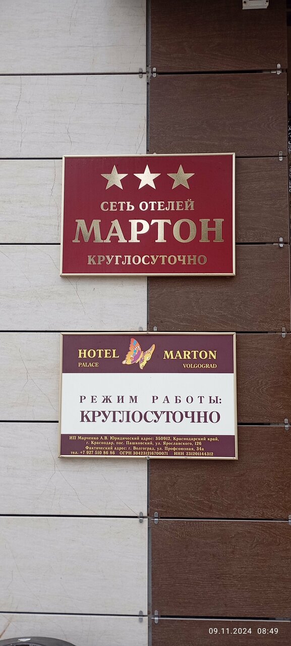 Информация об отеле Мартон Царицын актуализирована в ноябре 2025 года:
