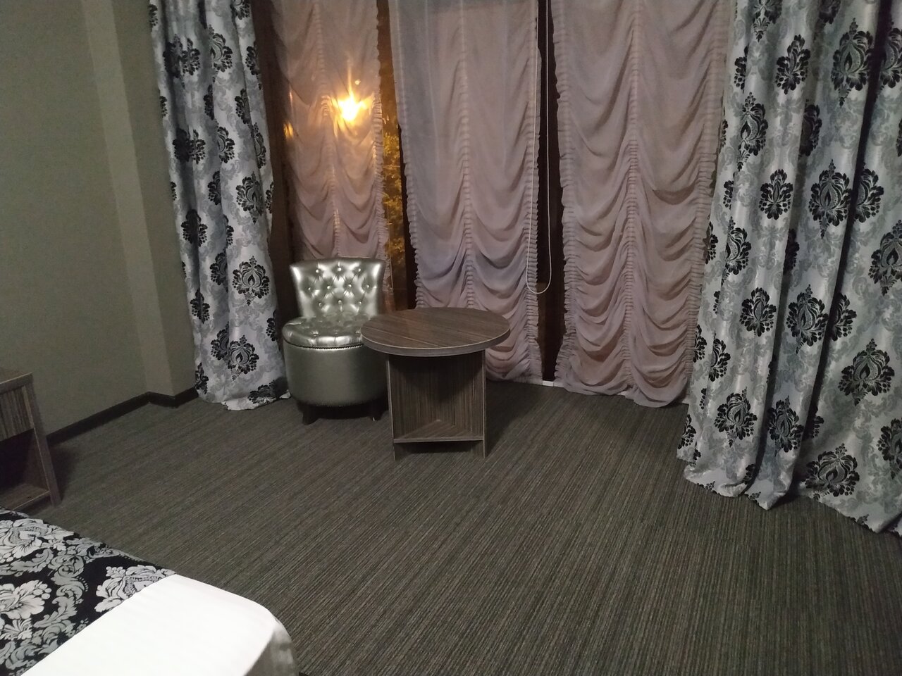 Отель хороший,номера большие,цена соответствует, бельё свежее ,сантехника исправна. Парковка есть,кухня работает круглосуточно. Понравилось.!!!!!