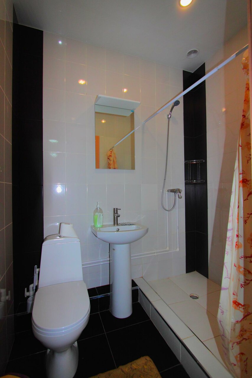 Очень вежливая, отзывчивая и доброжелательная администратор) большое спасибо! Когда увидела, что мы с ребёнком — заселила нас в другой номер с дополнительной кроватью. Разрешила воспользоваться кухней, дала чайник. Холодильника хоть и нет, но можно воспользоваться холодильником на 1 этаже. Полотенец достаточно. Расходники хорошие, только мыла не было, а в дозаторе на стене закончилось. Из минусов — пол грязноватый был.