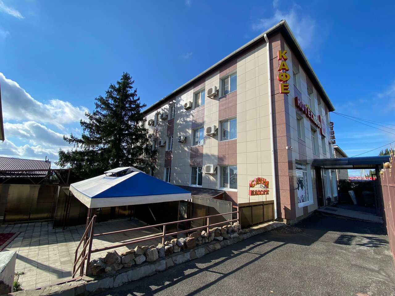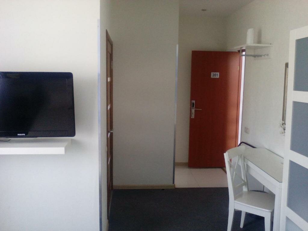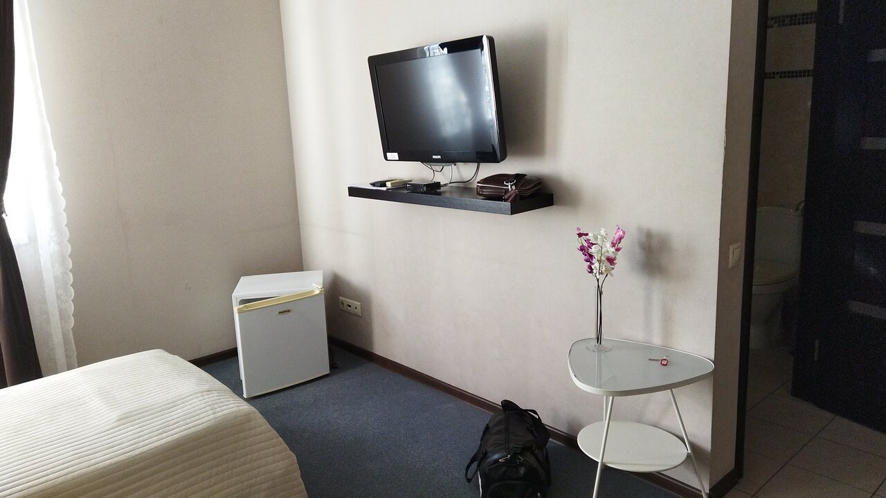- Работающий кондиционер и телевизор.; Возможность бронирования без предоплаты.; Внимательное обслуживание (выдача принадлежностей, помощь администратора).; Удобное расположение (рядом Ашан, можно поставить фуру).; Просторные номера (в некоторых — 2 комнаты, большая ванная).