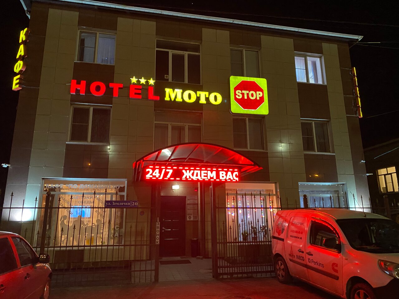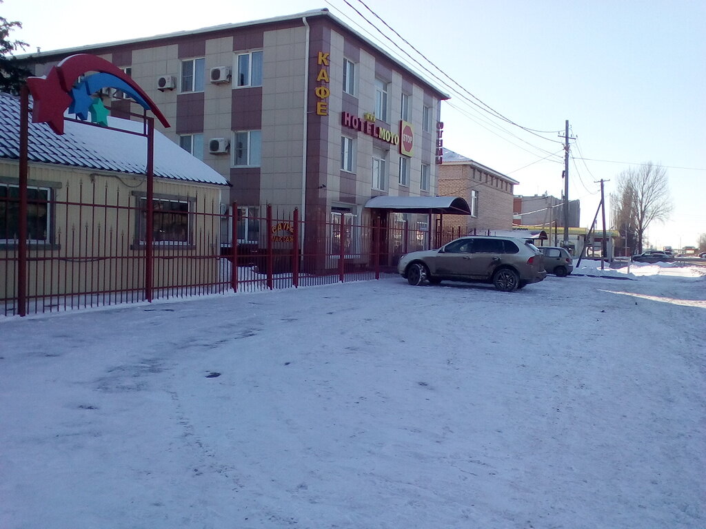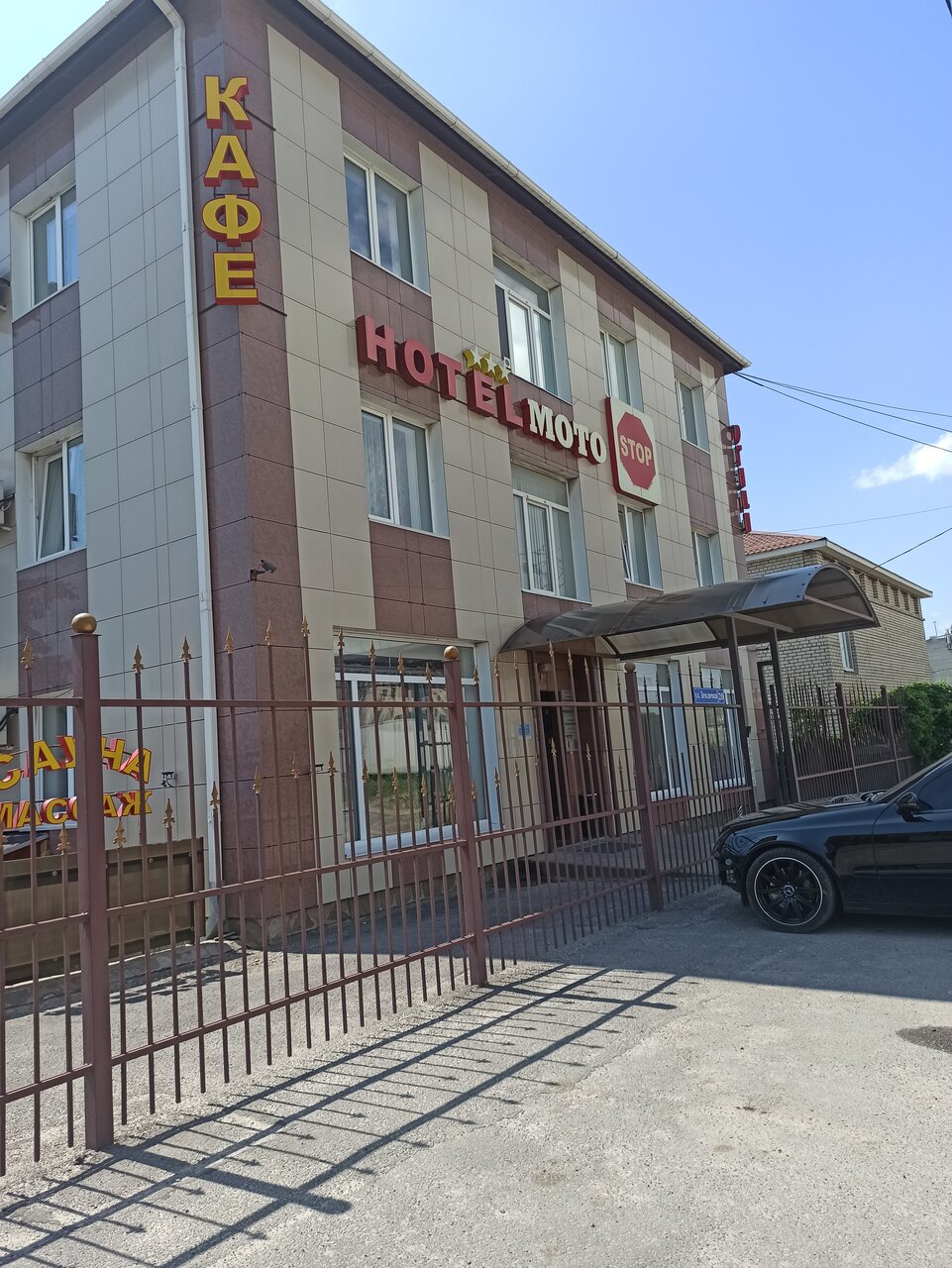 Гостиница «МотоСтоп» (Волгоград, ул. Землячки, 20) — трёхзвёздочный отель с круглосуточным обслуживанием. Предлагает номера (от 2200 до 4500 ₽/ночь) с кондиционером, Wi-Fi, мини-баром и санузлом. Для гостей доступны ресторан, кафе, бар, оздоровительный центр, баня, прачечная и трансфер. Разрешено проживание с животными (платно). Удобства: парковка, камера хранения, детские кроватки, завтрак (по меню), круглосуточная стойка регистрации.